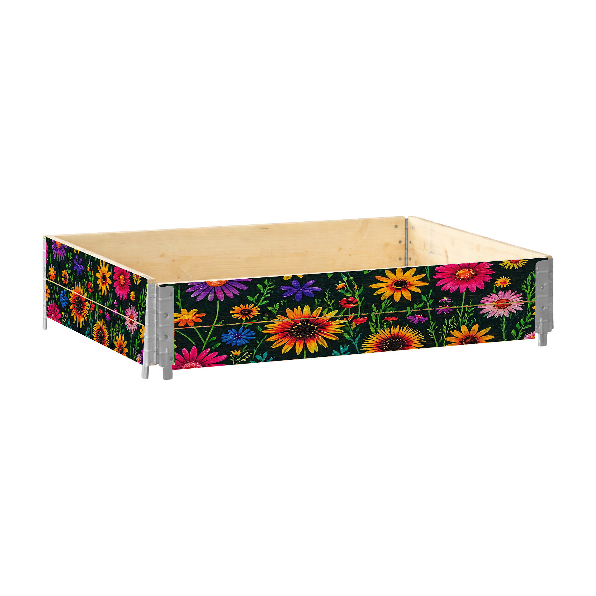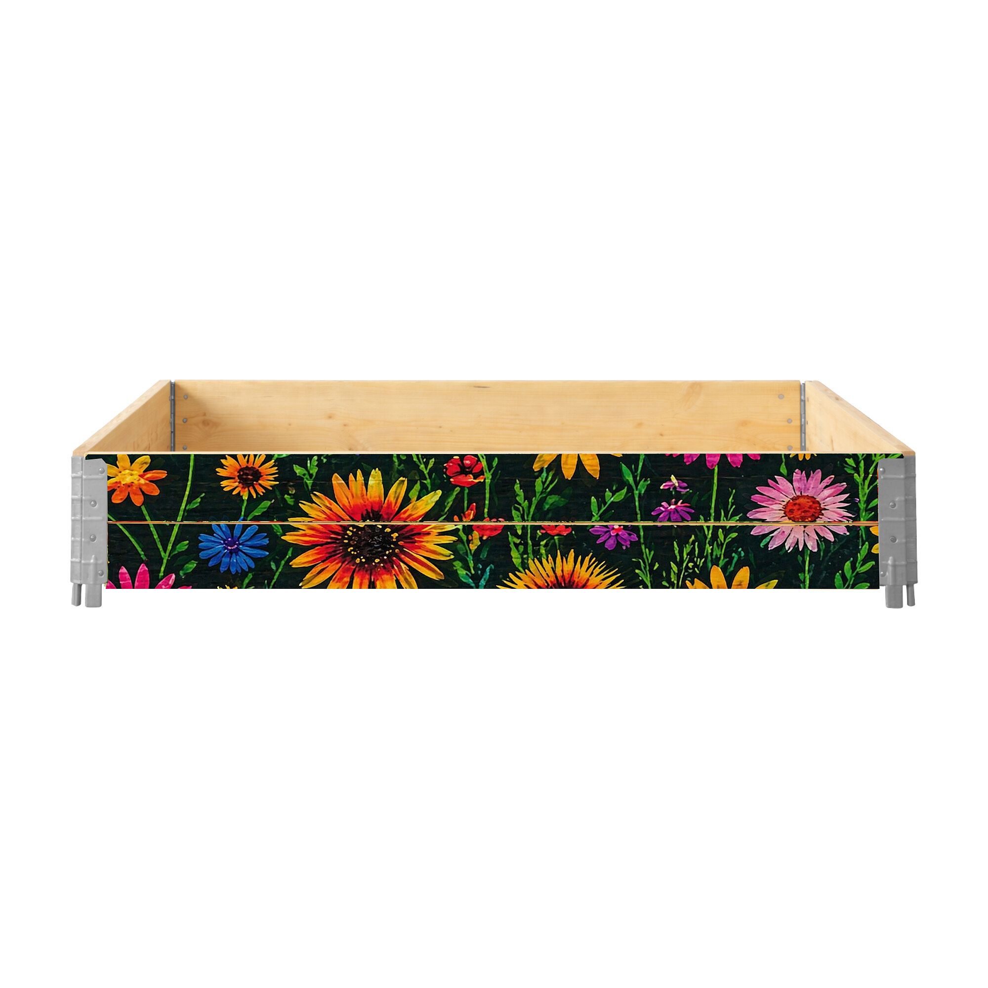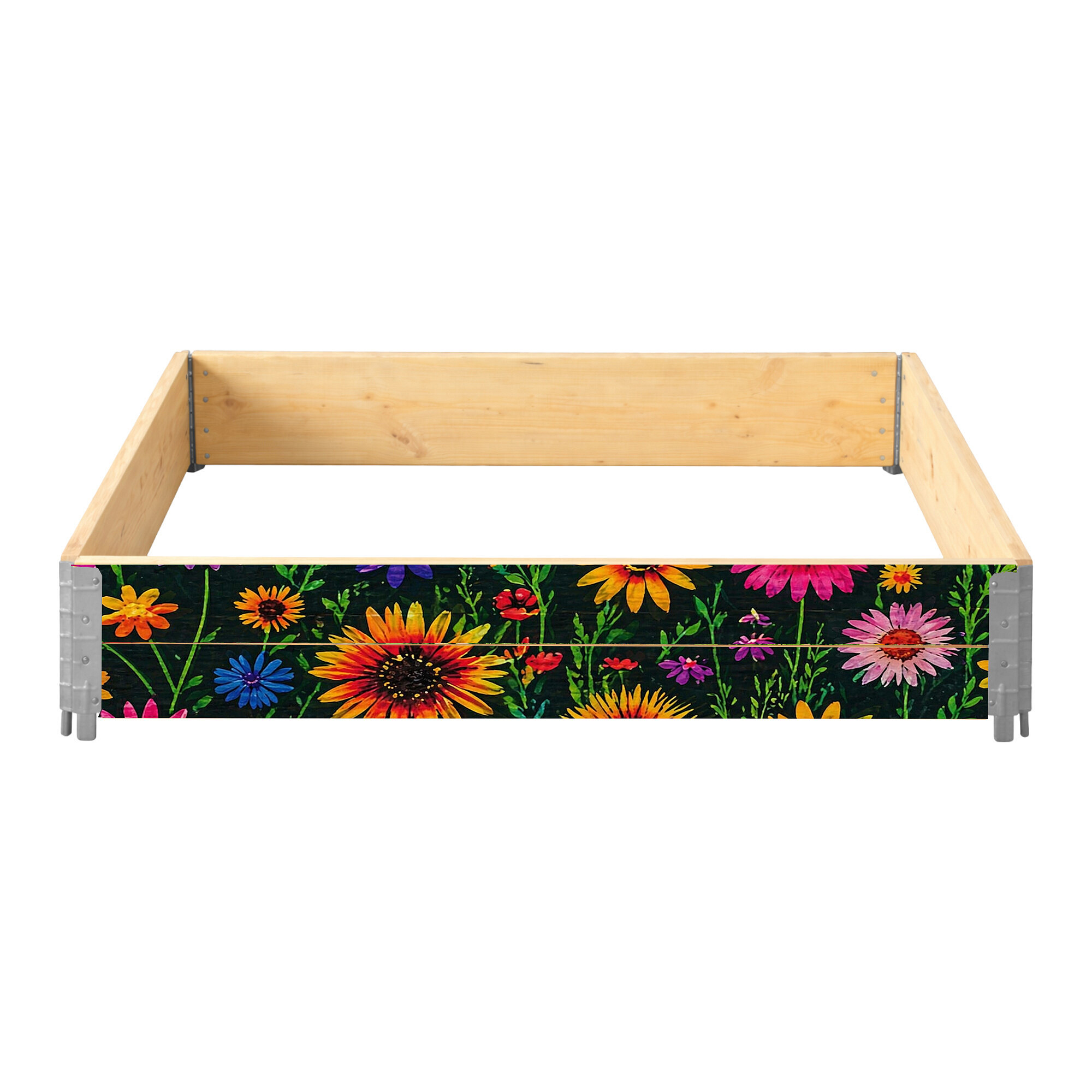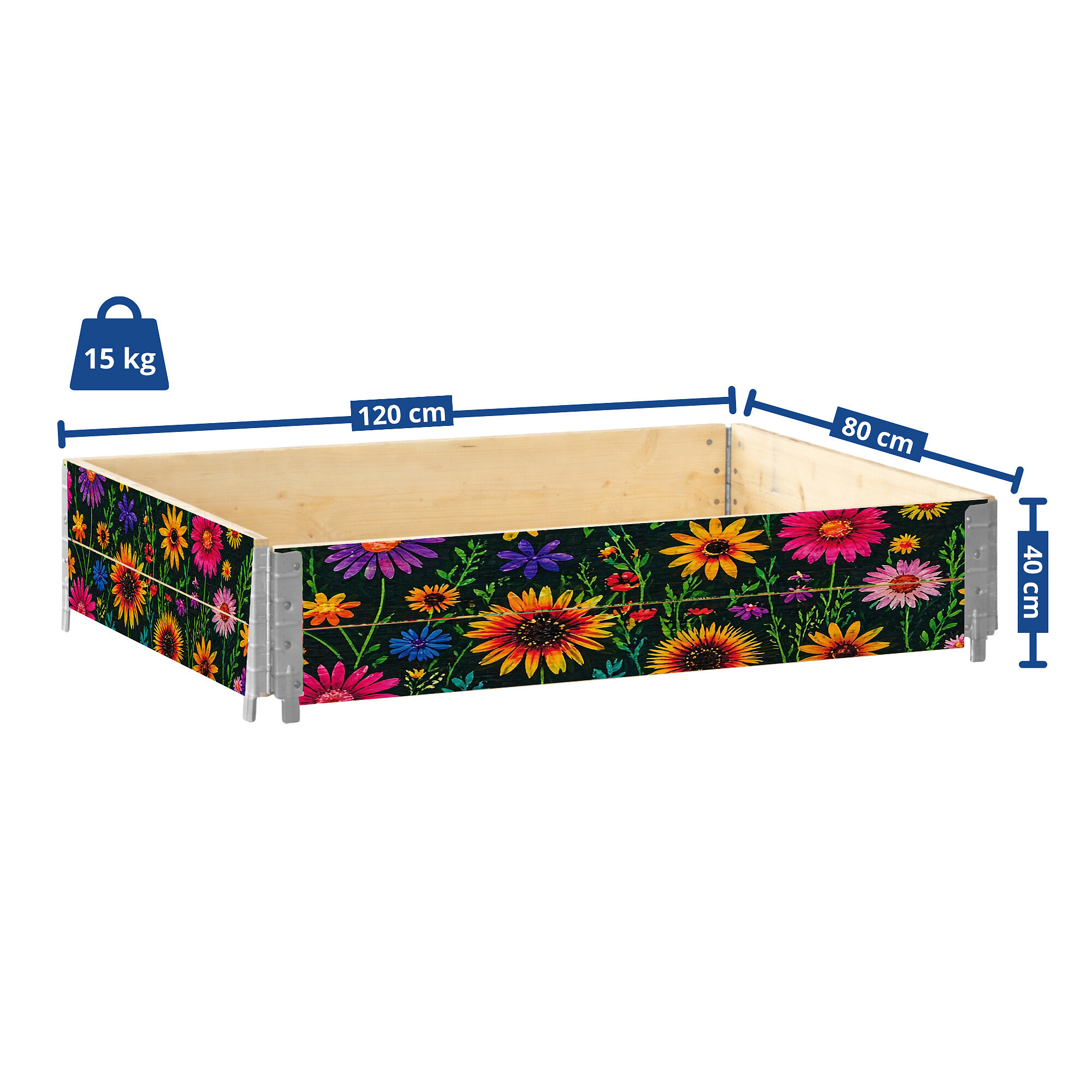 Лехата е изработена от борова дървесина с IPPC сертификация. Външната страна е допълнена с графика на цветя, която подчертава градинския му вид и добре се вписва в откритата среда. Размерът 120 × 80 см предлага достатъчно пространство за домашно отглеждане на обичайни видове зеленчуци, билки, ягоди и цветя. Височината от 40 см позволява създаването на слой почва, подходящ за различни видове засаждане.