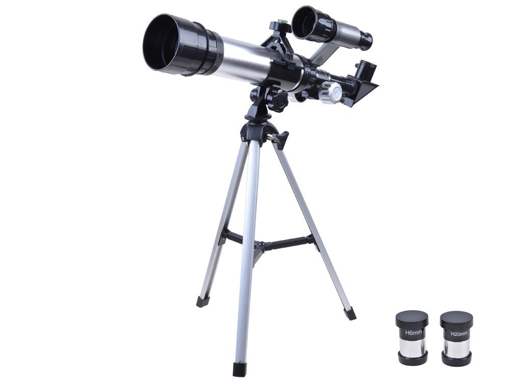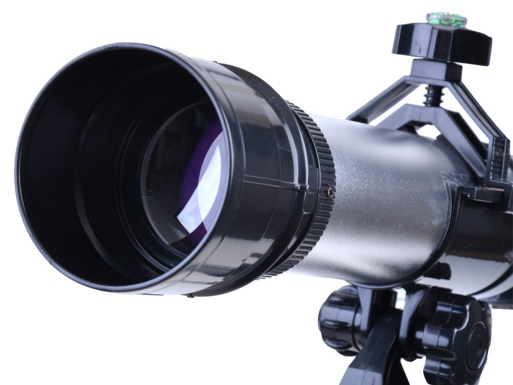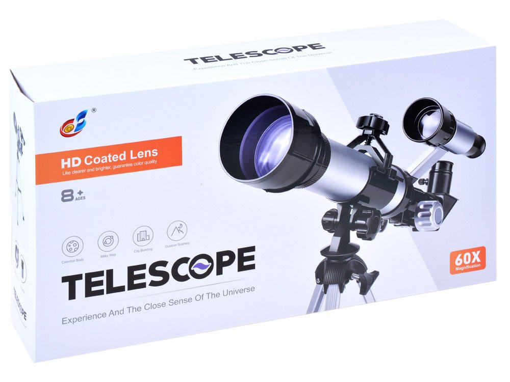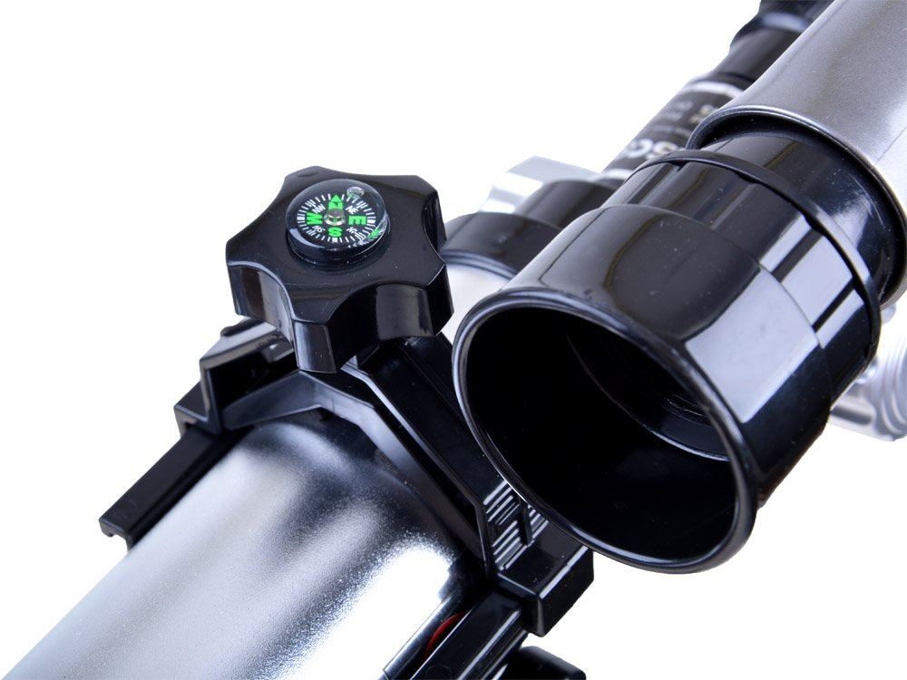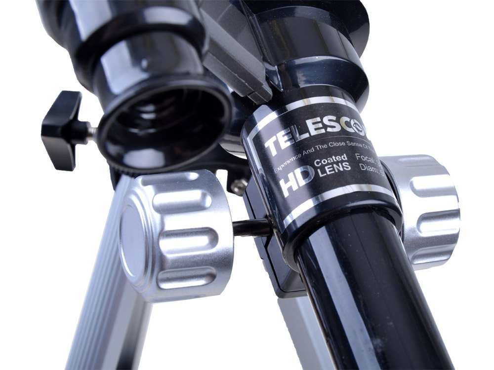 Телескопът е изработен от пластмаса, алуминиев статив.