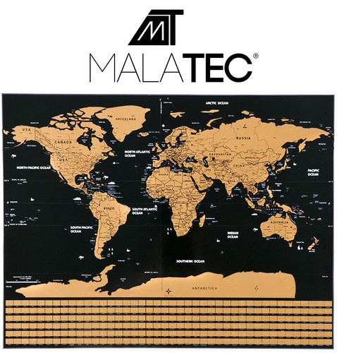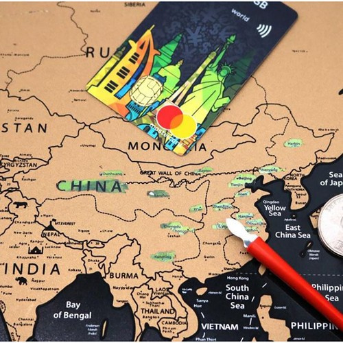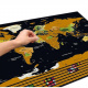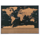Световната стържеща карта е перфектният аксесоар за всеки пътешественик. Продуктът е изработен класически, черният цвят е комбиниран със златно. Всяка страна и континент бяха покрити с алуминиево фолио за изстъргване. Фолиото има еднороден цвят, но при надраскване се появяват различни нюанси и точни контури на отделните страни. Хартията, от която е изработен скреч билетът, има качествена структура, така че при изтриване няма опасност от повреда или лош външен вид.