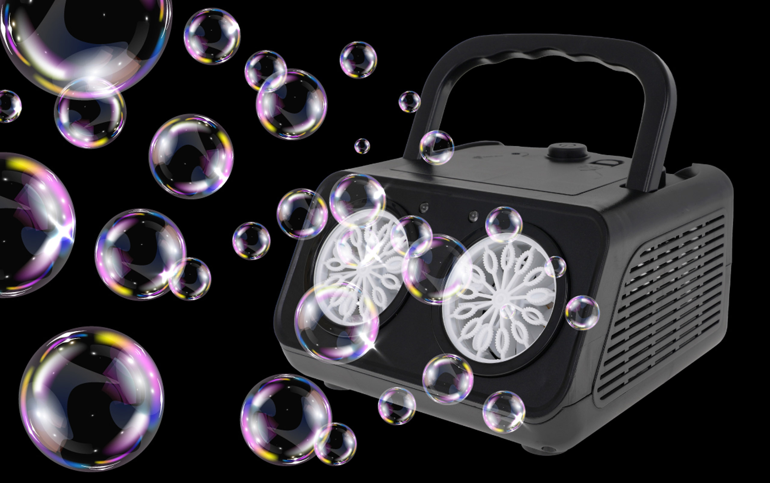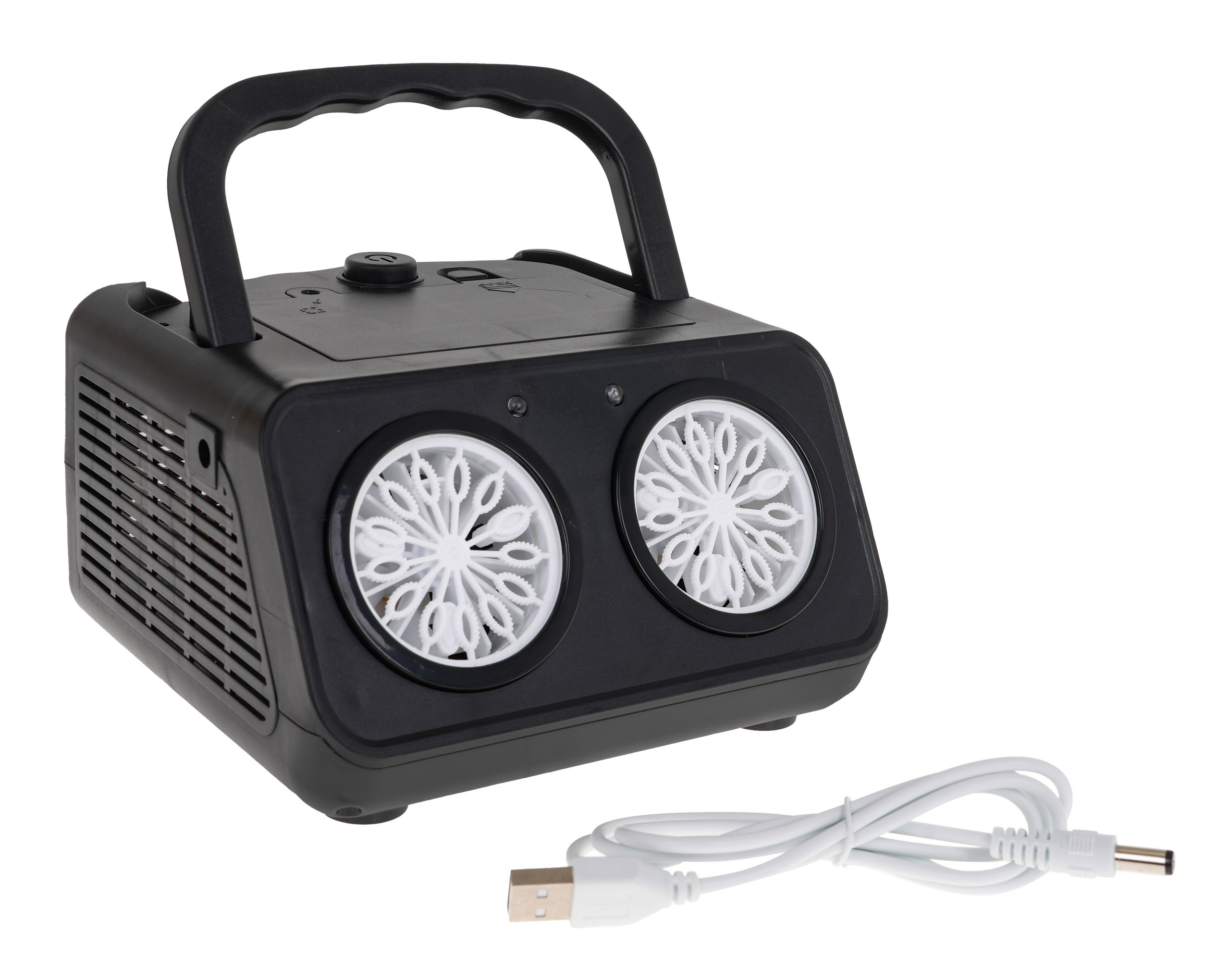 | Maszyna do robienia baniek, wytwornica z dwiema dyszami dla dzieci od 3-go roku życia, młodzieży i dorosłych. Wydajna wytwornica urozmaici każdą zabawę. Po podaniu specjalnego płynu lub wody z mydłem z dwóch dysz wydobywają się kolorowe bańki mydlane, a cichy wentylator zainstalowany w maszynie rozwiewa je dookoła. Dodatkowo bańki są podświetlane przez dwie diody znajdujące się przy dyszach. Wytwornica zasilana jest bateriami typu 4 x AA 1,5V, baterii brak w zestawie. Maszynę wyposażono w wygodną rączkę do przenoszenia. Specyfikacja: - rączka do przenoszenia, - kieszeń na zbiornik z płynem, - zabezpieczenie przed niekontrolowanym wylaniem, - podświetlenie przy wylocie baniek, - cichy wentylator. | |