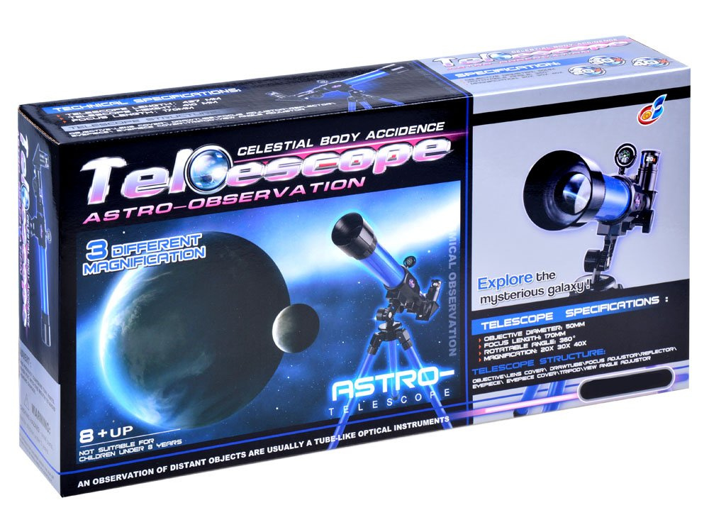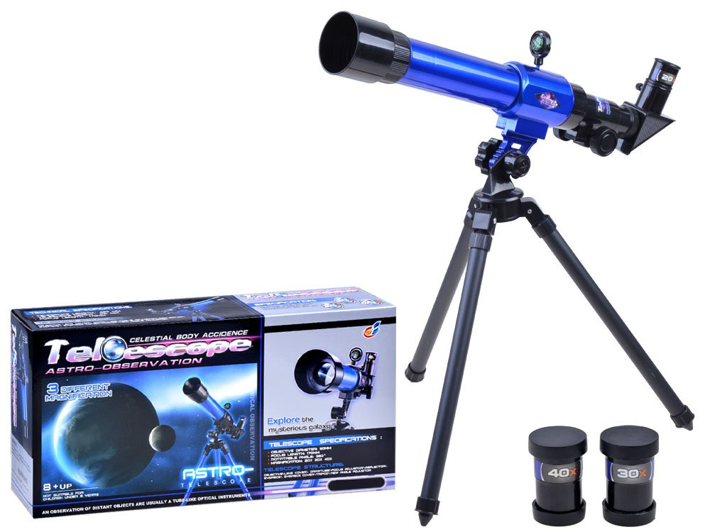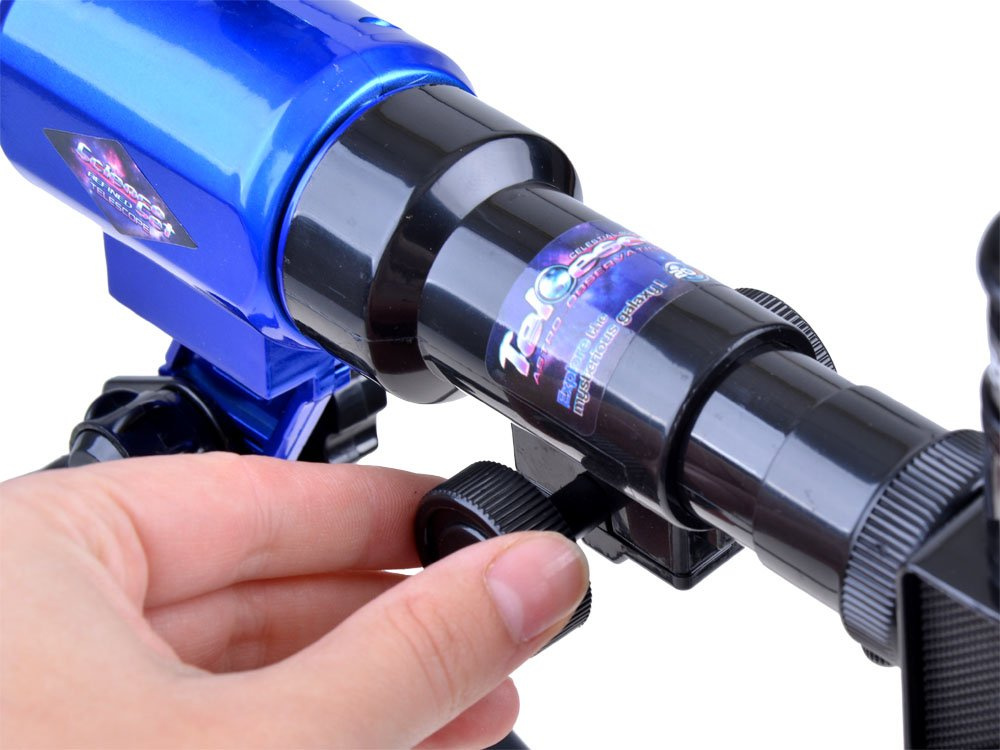 Телескопът е изработен от пластмаса, алуминиев статив.
