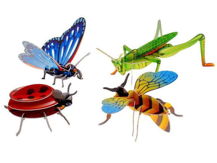 Фантастичен комплект 3D пъзели, от които можете да сглобите красиви цветни насекоми. Това е чудесно забавление както за начинаещи сглобявачи, така и за моделисти. Съставянето на насекоми развива пространственото въображение и в същото време ни запознава с тази не винаги напълно обичана група животни :) Играта носи голямо удовлетворение, учи на търпение и изисква прецизност и нежност. Препоръчителна възраст 3+
