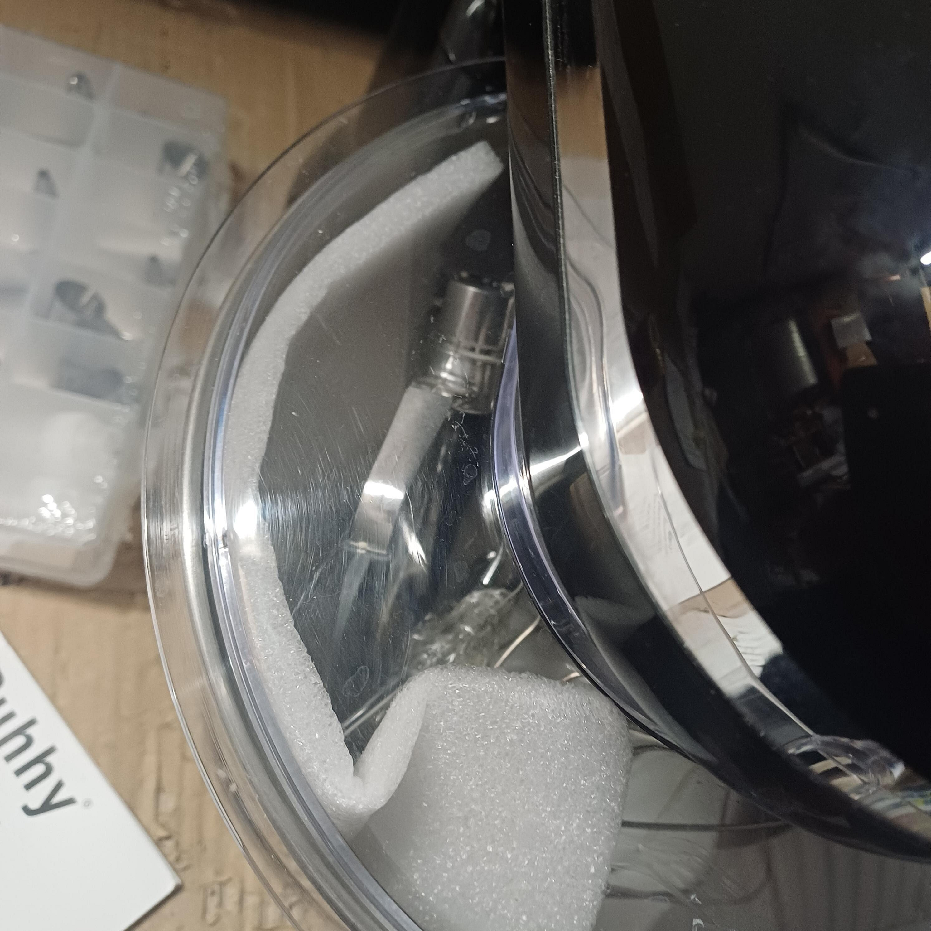ГОЛЯМА КУПА 4,5л - машината има 4,5 литров съд, който е оборудван със здрава дръжка, която ще улесни работата ви при работа и изваждане на съдържанието му. Изработена е от неръждаема стомана и има защита срещу пръски вода, благодарение на която ви позволява да я поддържате чиста дори при смесване с висока скорост.