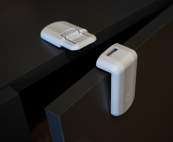 БЕЗПРОБЛЕМЕН ДОСТЪП ЗА ВЪЗРАСТНИ - до съдържанието на мебелите, без премахване на защитата. Просто натиснете защитата на правилното място и клипът ще се отвори. След изваждане на необходимите аксесоари от шкафа / чекмеджето е достатъчно да затворите ключалката на чекмеджето и то отново изпълнява своята функция.