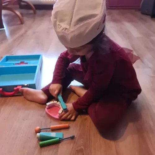 Комплектът за малък лекар / зъболекар е чудесно въведение в света на медицината и всички включени елементи позволяват на вашето дете да играе ролята на най-добрия лекар, докато се забавлява. Синьото калъфче във формата на аптечка съдържа всички елементи, благодарение на които вашето дете ще се почувства като истински лекар.