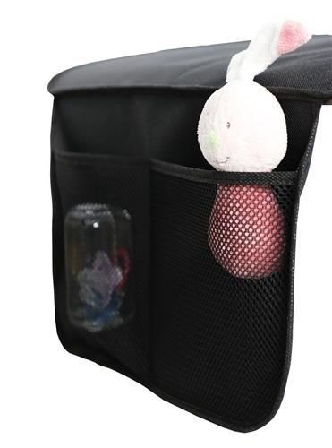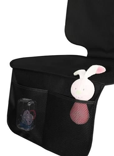Предпазната подложка е там лесно сглобяване - просто я разстелете върху седалката и я прикрепете към облегалката за глава с еластична лента, зашита в горната част на облегалката.Два джоба, разположени в долната част на постелката, ви позволяват да съхранявате необходимите вещи.От външната страна са изработени от перфориран материал, което позволява бързо да се види какво има вътре. Цялата защитна подложка може да се пере в пералня. Постелка Подходяща за повечето стандартни автомобилни седалки и повечето детски седалки, обърнати напред и назад, включително и тези, монтирани със системата ISOFIX.
