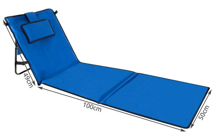 ? ЛЕСНО ПРЕНОСИМА - плажната постелка с регулируема облегалка е благодарение на сгъваемата конструкция и ниското тегло аксесоар, който е изключително лесен за пренасяне. Размерите на сгънатата постелка са 50 x 50 см и презрамката определено ще ви улесни пътя до плажа.