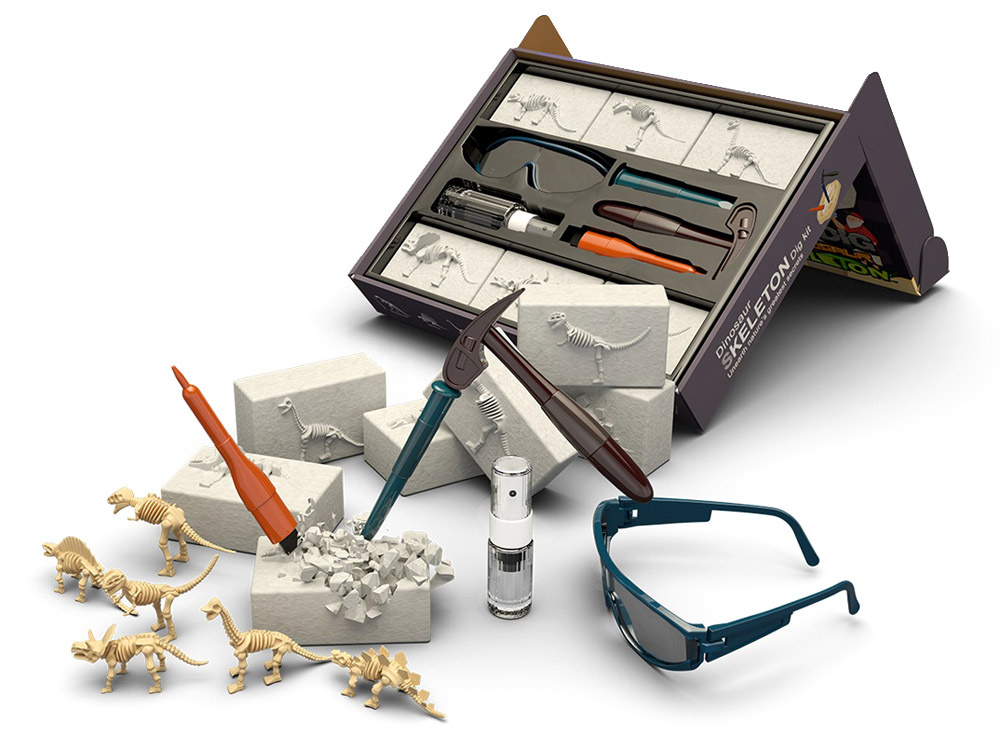 Динозаврите са едни от най-интересните праисторически животни, тяхната история, структура предизвиква любопитството на много възрастни учени. Сега детето ви може да открие праисторията от най-ранна възраст. Ако детето ви има типично любопитство и желание да изследва миналото и света, това ще бъде идеалният подарък за него. Комплектът за малкия археолог ви позволява да се запознаете със скелетната структура на тези влечуги. Комплектът е опакован в картонена кутия, чудесна за подарък.