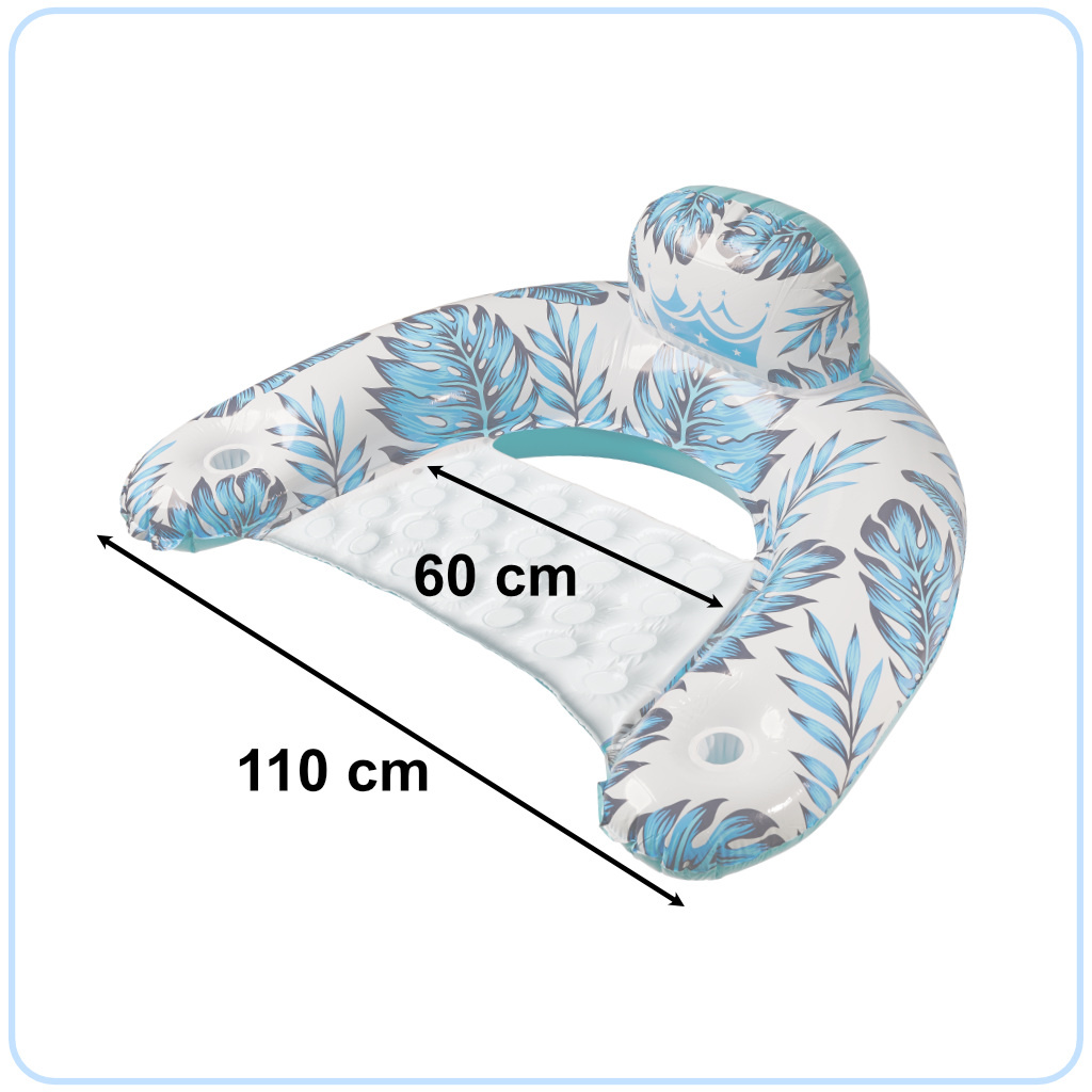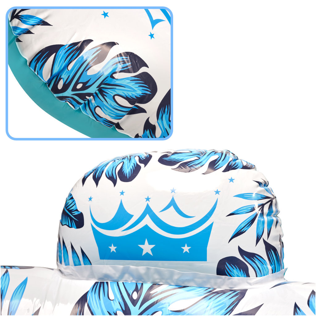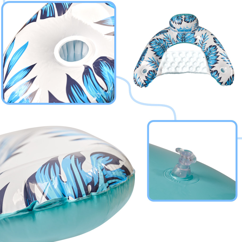 Освен очевидното удобство, което продуктът предоставя, надуваемият стол предлага и визуално изживяване - интересен и цветен дизайн с мотив на палма и листа на монстера със сигурност ще привлече вниманието на много хора!