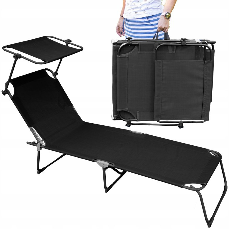 СГЪВАЕМ ГРАДИНСКИ ШЕЗЛОНГ Инвестирайте в собственото си външно релаксиращо кътче с този елегантен сгъваем градински шезлонг. Шезлонгът е изработен от здрав и лек алуминий, който гарантира стабилност и лесна манипулация. Идеален за градината, терасата или басейна. Навесът на шезлонга осигурява приятна сянка в горещите дни и ви предпазва от слънцето. СПЕЦИФИКАЦИЯ: ✅ Размер на покрива: 43 x 38 см ✅ Височина от пода: 26 см ✅ Ширина на шезлонга: 55 см ✅ Цвят: черен ✅ Максимална товароносимост: 120 кг ✅ Тегло: 4,7 кг