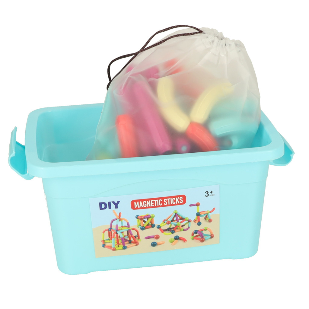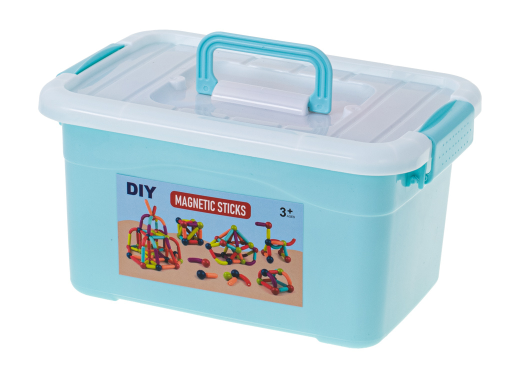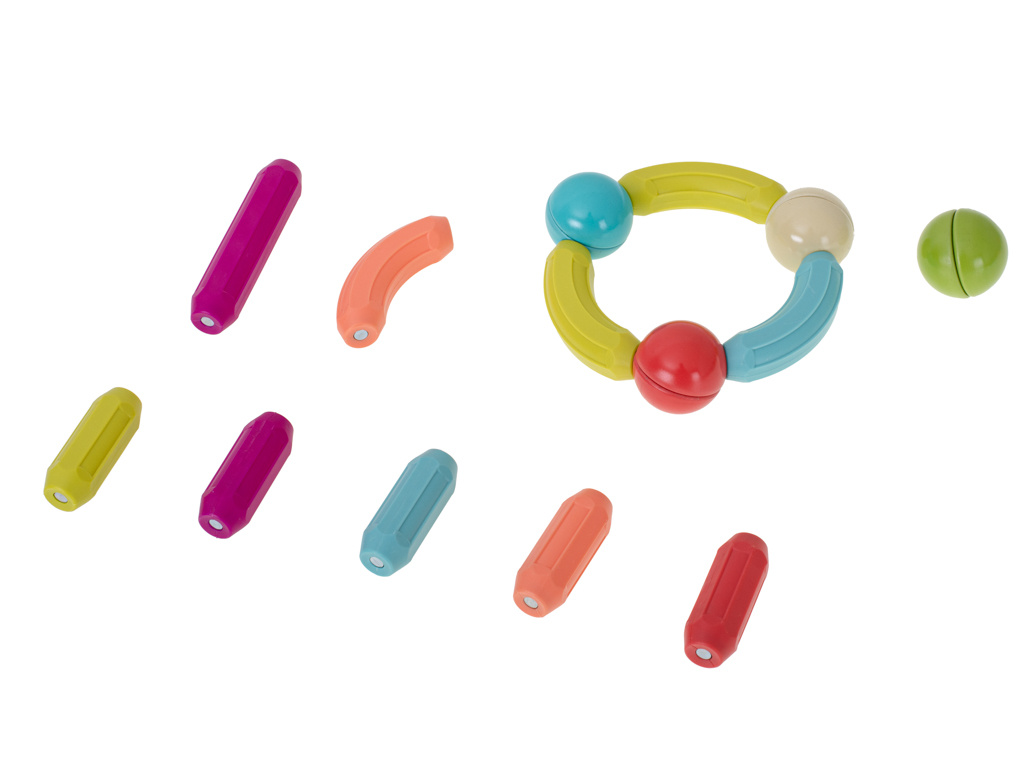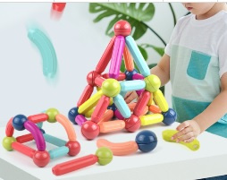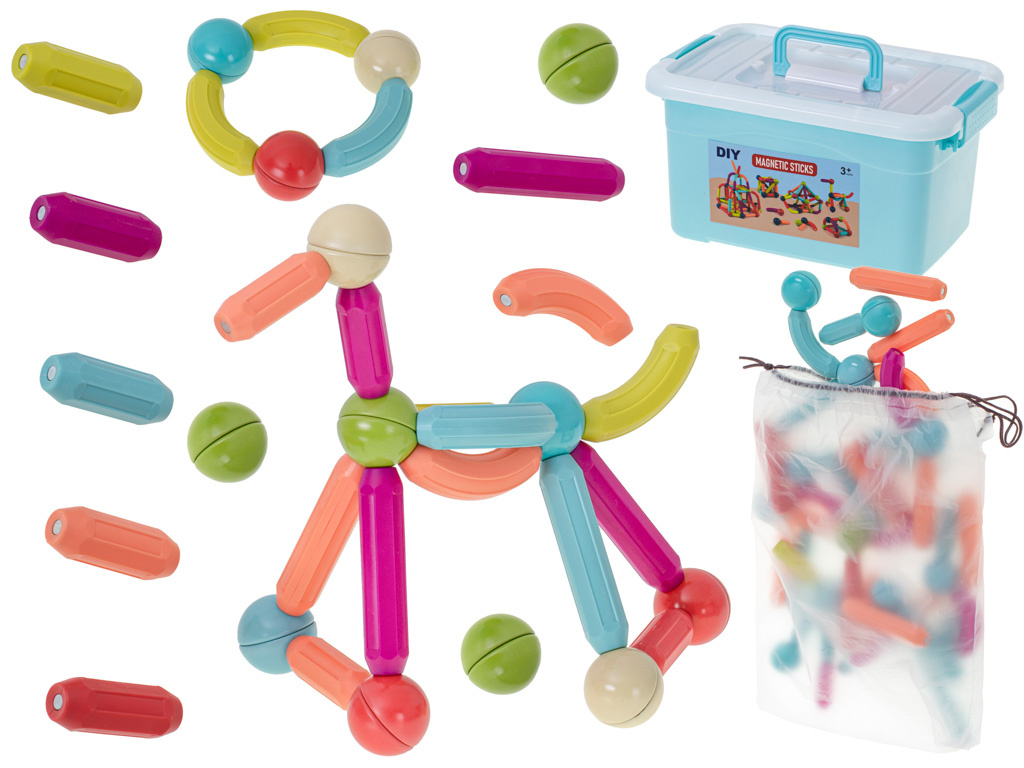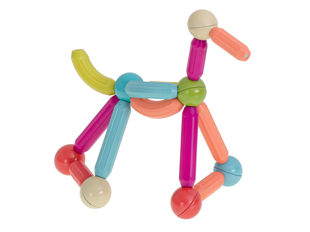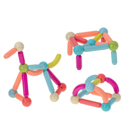 Комплект от 100 цветни магнитни кубчета. Играта се състои в подреждане на числа, форми и знаци. То стимулира въображението и развива ръчните умения. Материал: пластмаса + метал. Размери: топче - 4 см, най-дългото блокче - 8,5 см, най-късото блокче - 5,5 см.Цялото описание