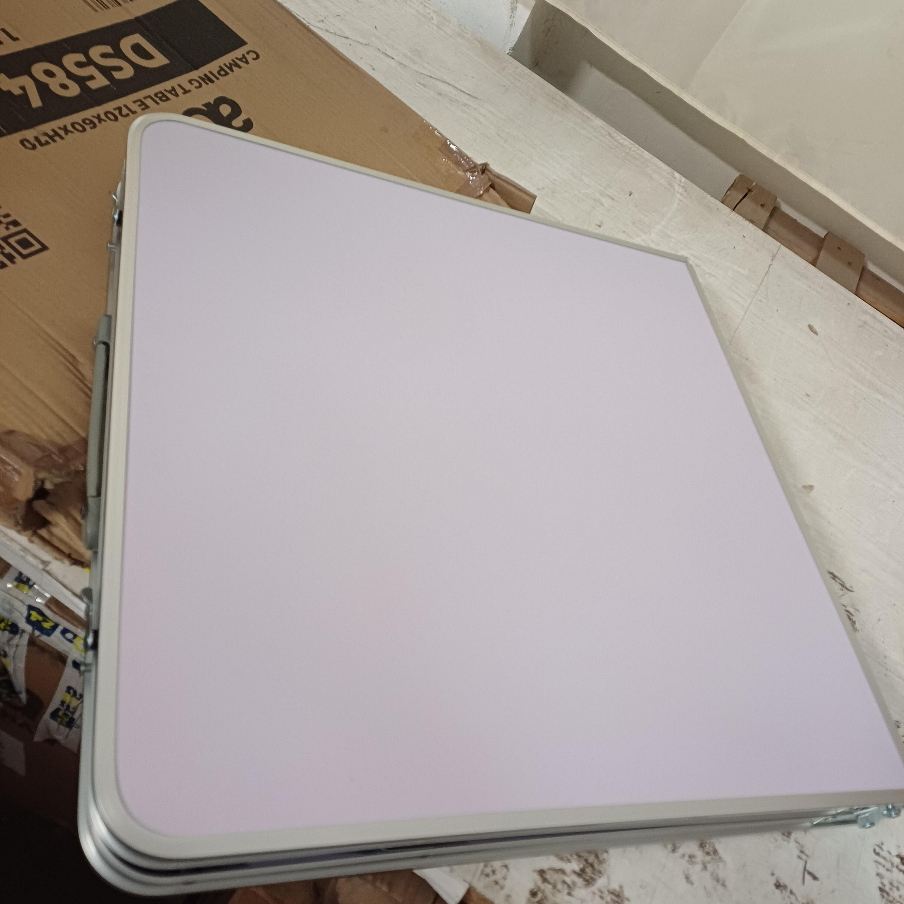 - В сгънато състояние масата е лесно преносима под формата на плоска плоча с дръжка