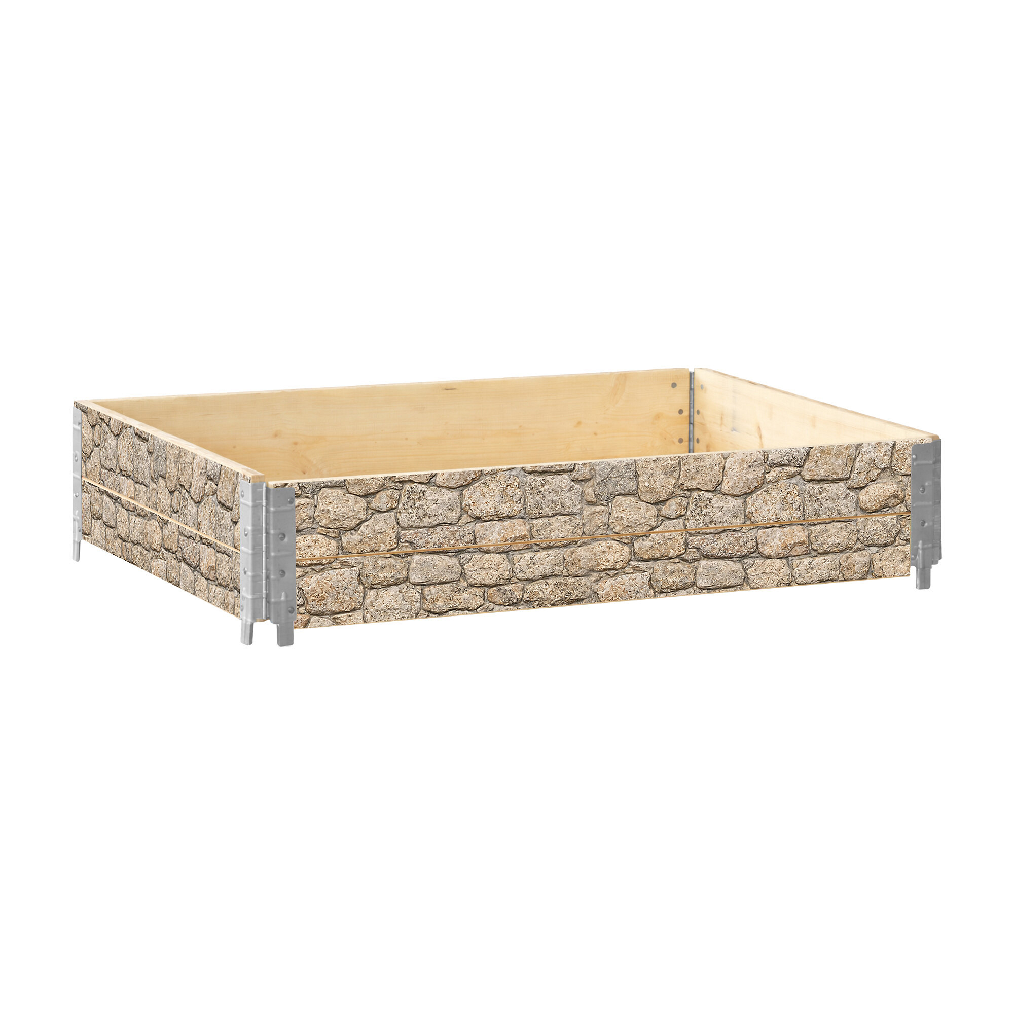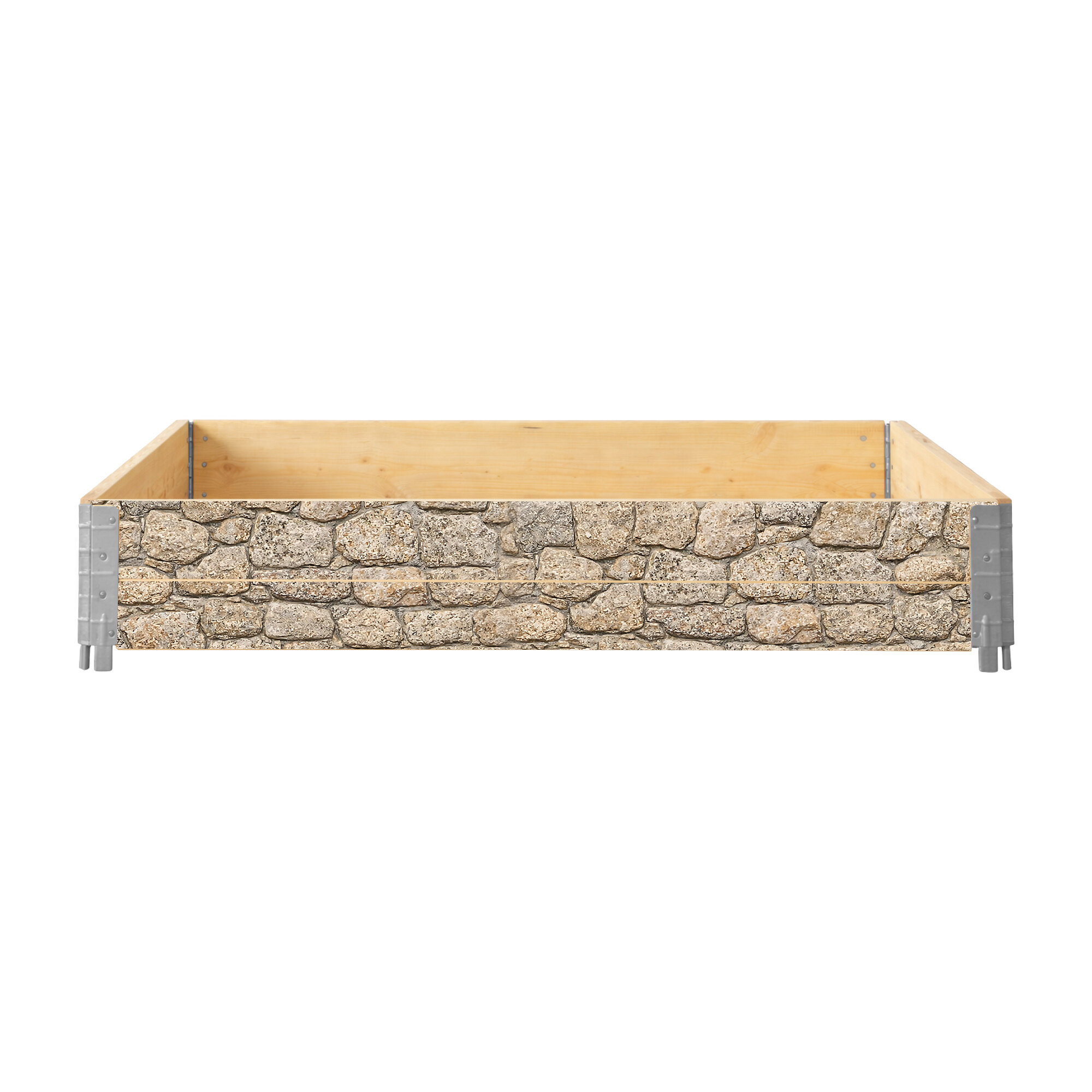 Лехата е изработена от борова дървесина с IPPC сертификация. Външната страна е допълнена с графика на камък, която подчертава неговия градински вид и добре се вписва в откритата среда. Размерът 120 × 80 см предлага достатъчно пространство за домашно отглеждане на обичайни видове зеленчуци, билки, ягоди и цветя. Височината от 40 см позволява създаването на слой почва, подходящ за различни видове засаждане.