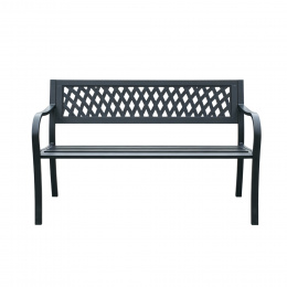 Конструкцията на градинската пейка е изработена от стомана и чугун, тези материали са устойчиви и същевременно гарантират стабилност. Конструкцията на пейката е с повърхностна обработка чрез прахово боядисване, което я прави изключително устойчива на атмосферни влияния и с дълъг живот.