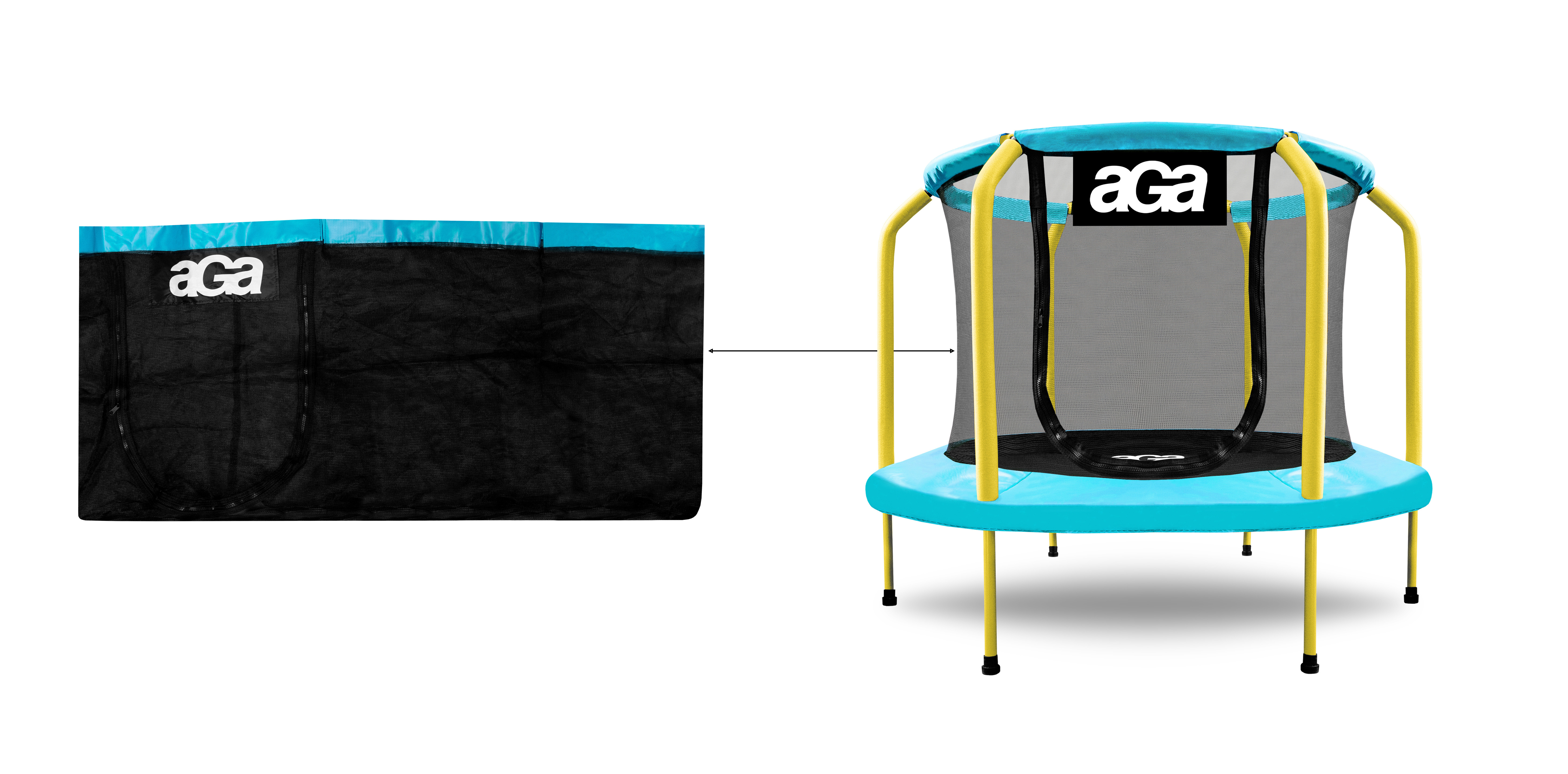Това ще позволи пълното затваряне на пространството на батутата и по този начин ще осигури максимална възможна безопасност срещу наранявания.