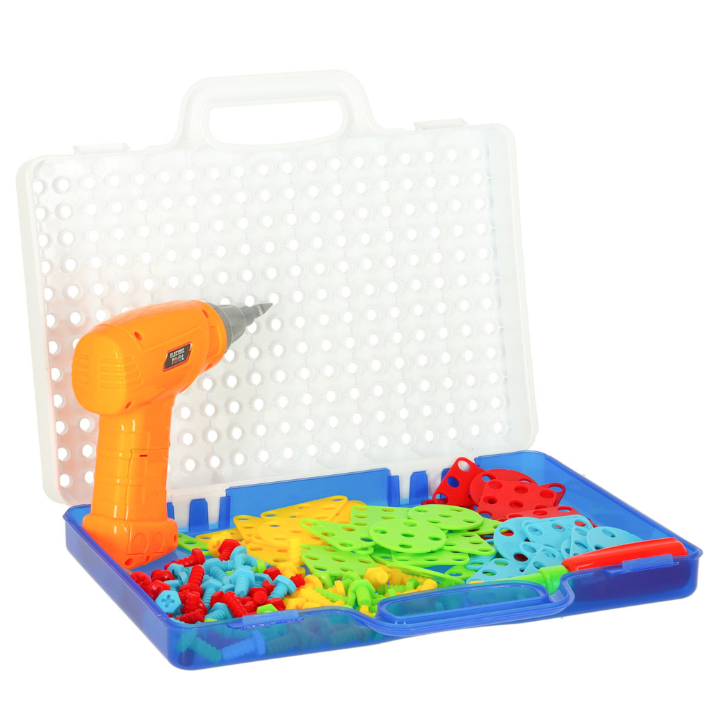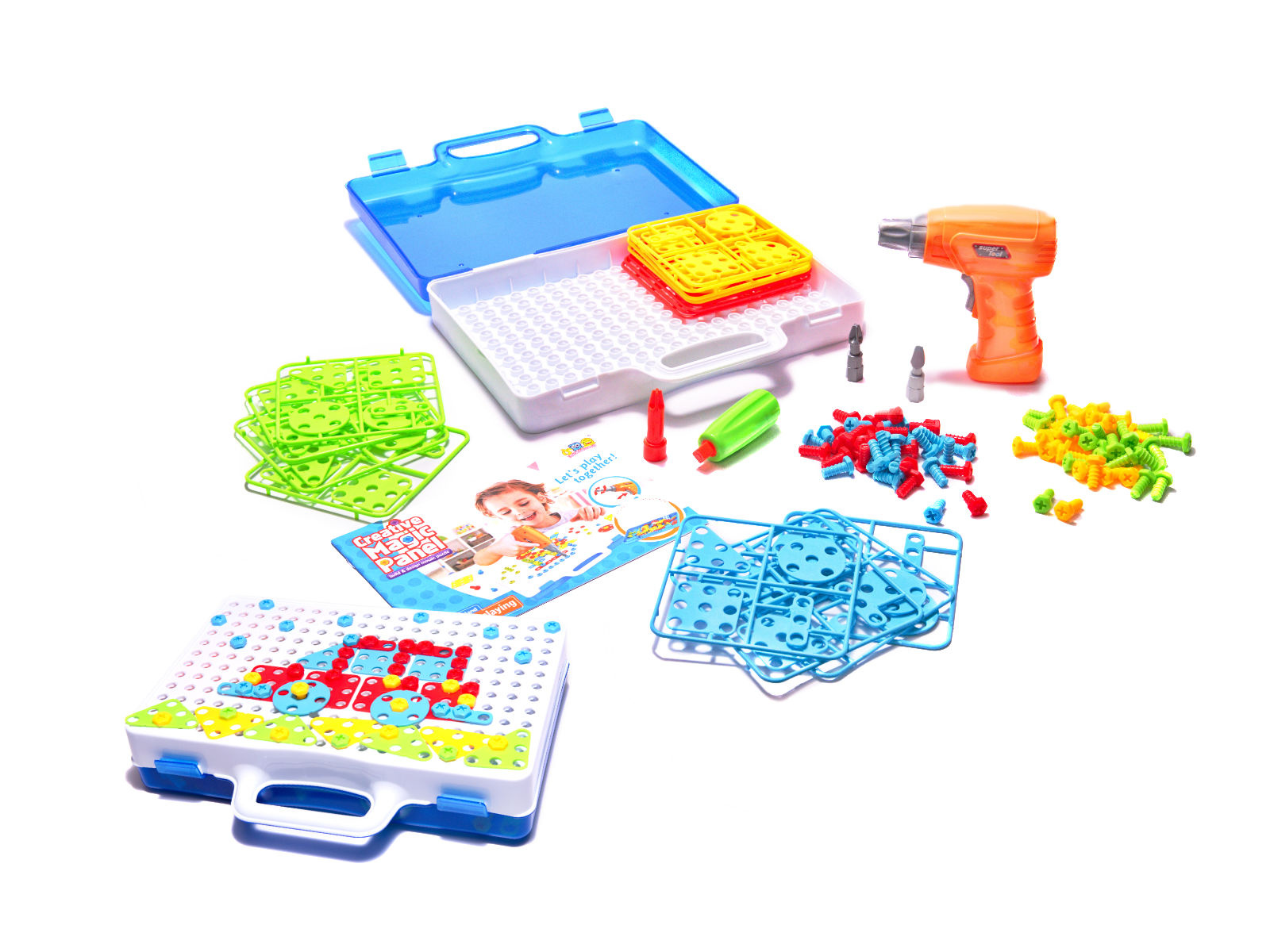 Образователен пъзел комплект Зарове + отвертка, ще привлече много деца, развива двигателните им умения. Размер на калъфа: 24 cm x 30 cm x 6 cm