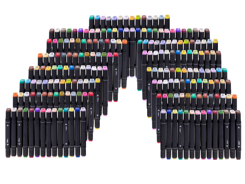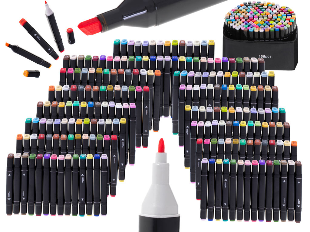Комплектът съдържа 168 маркера в различни цветове.