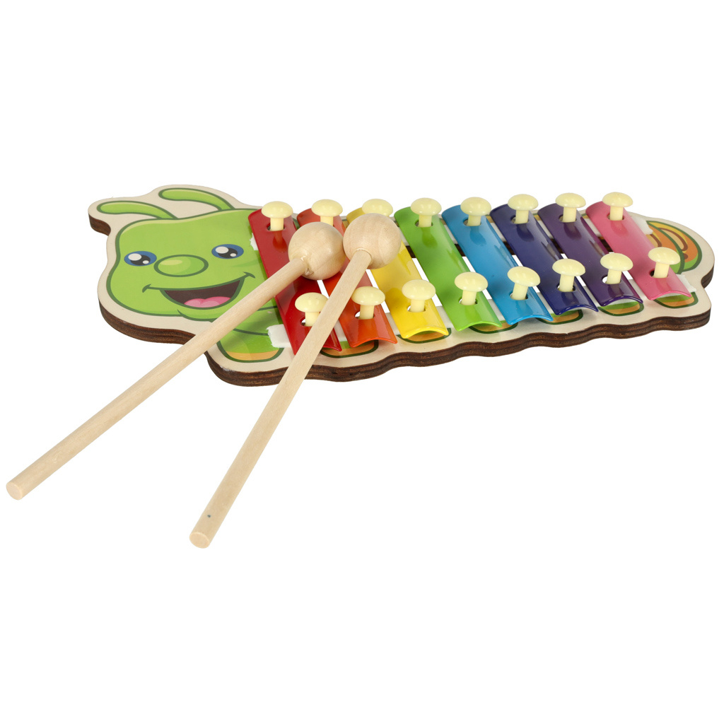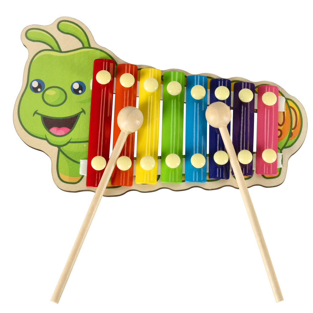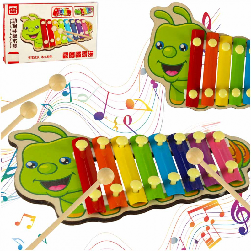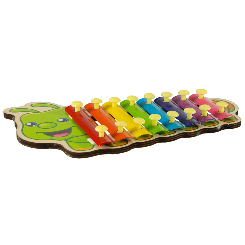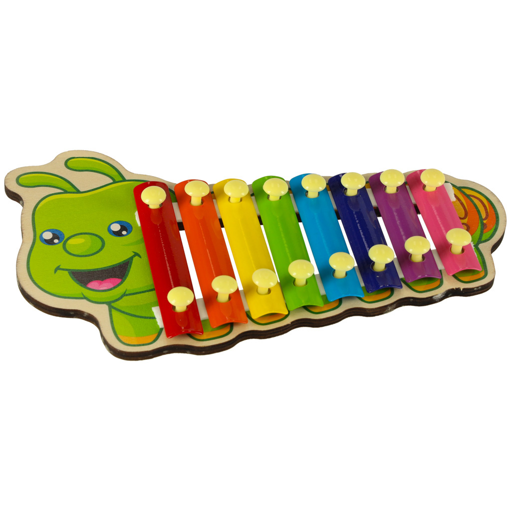 Цветният дървен ксилофон е идеален за начинаещи музиканти. Ксилофонът е изработен от осем метални пластини в различни цветове. Играта с инструмента учи децата да разпознават звуци и подобрява усещането им за ритъм. Освен това стимулира креативността и творческото мислене, учи на търпение и подобрява паметта и концентрацията. Осем различни звука ви позволяват да свирите прости мелодии.
