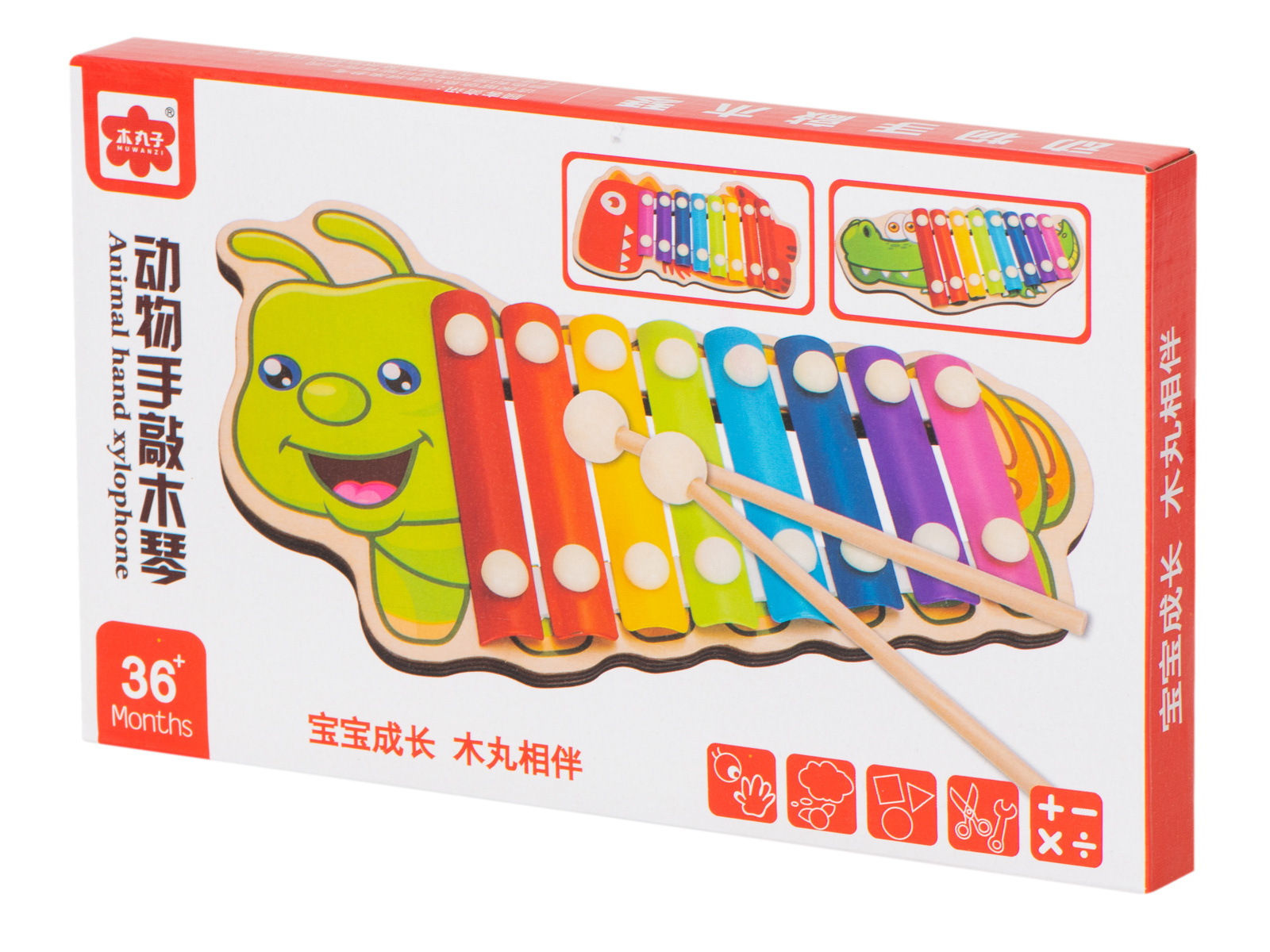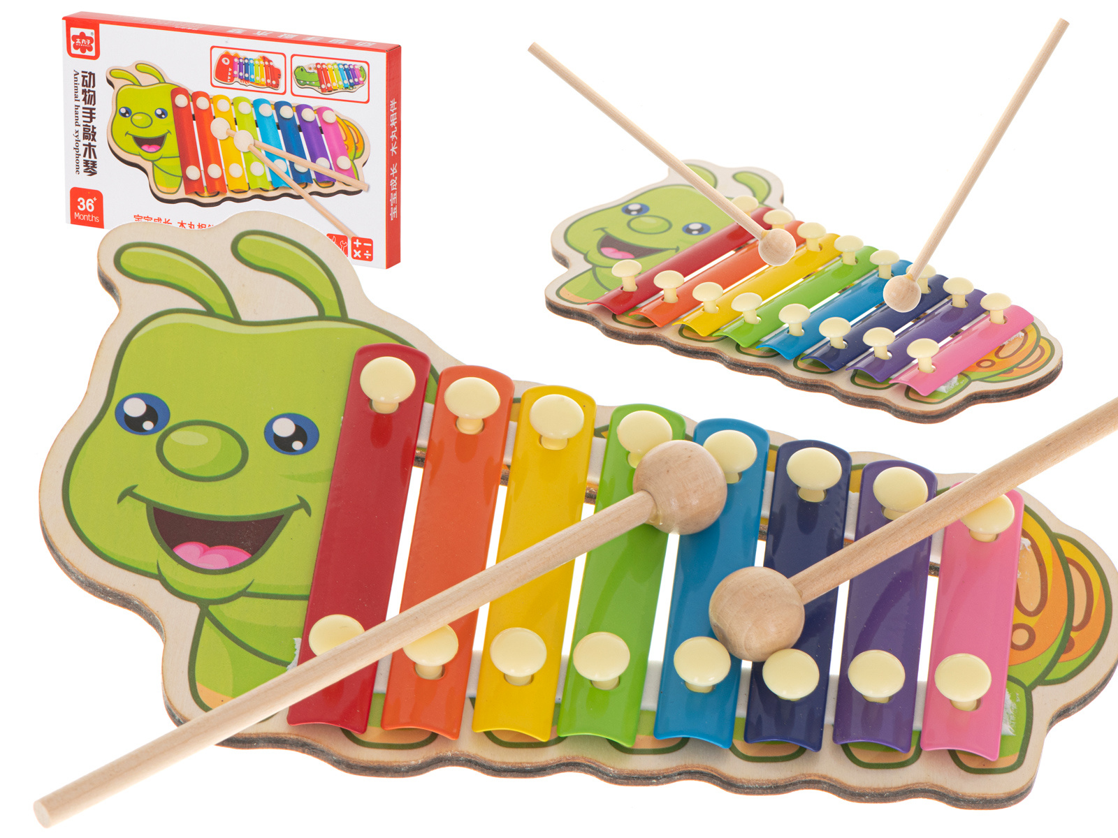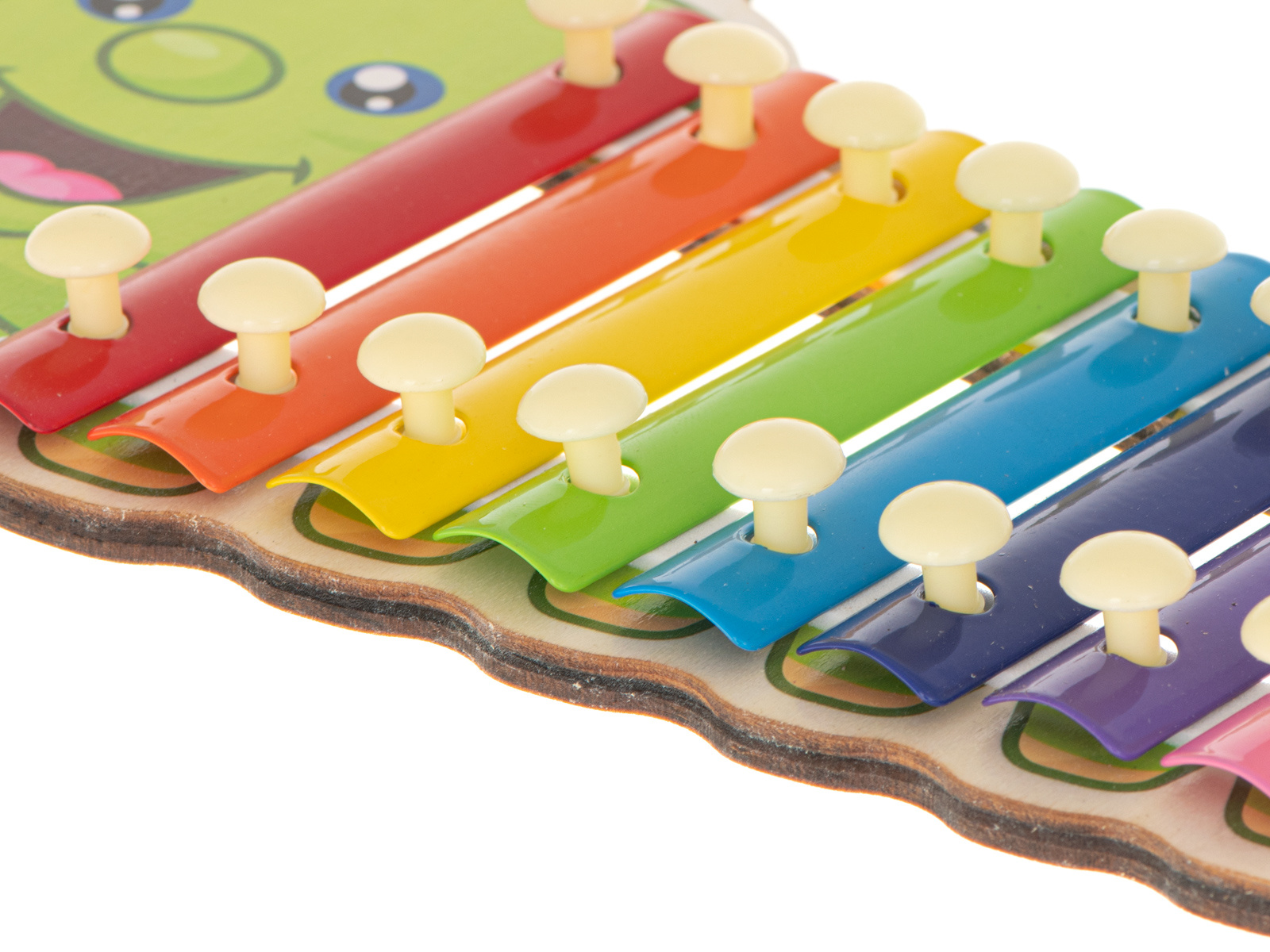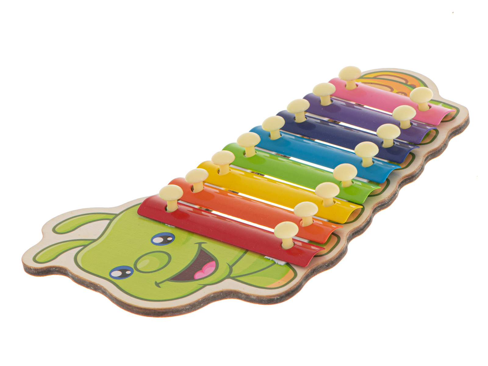 Цветният дървен ксилофон е идеален за начинаещи музиканти. Ксилофонът е изработен от осем метални пластини в различни цветове. Играта с инструмента учи децата да разпознават звуци и подобрява усещането им за ритъм. Освен това стимулира креативността и творческото мислене, учи на търпение и подобрява паметта и концентрацията. Осем различни звука ви позволяват да свирите прости мелодии.