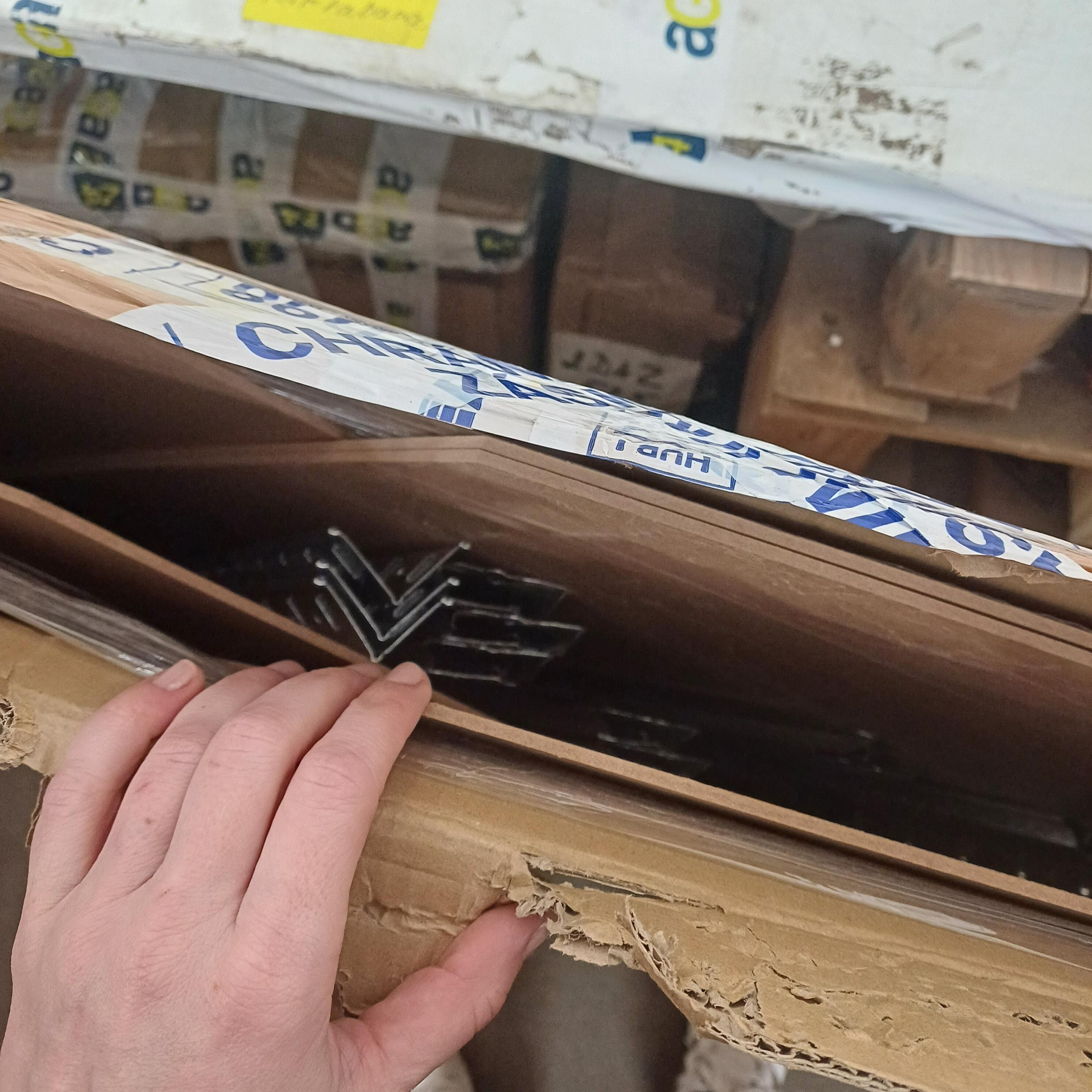 Ъгловият рафт показва повреда – рафтовете са надраскани.