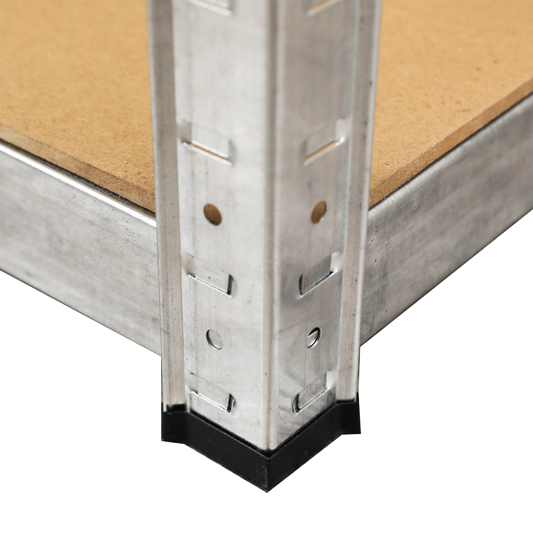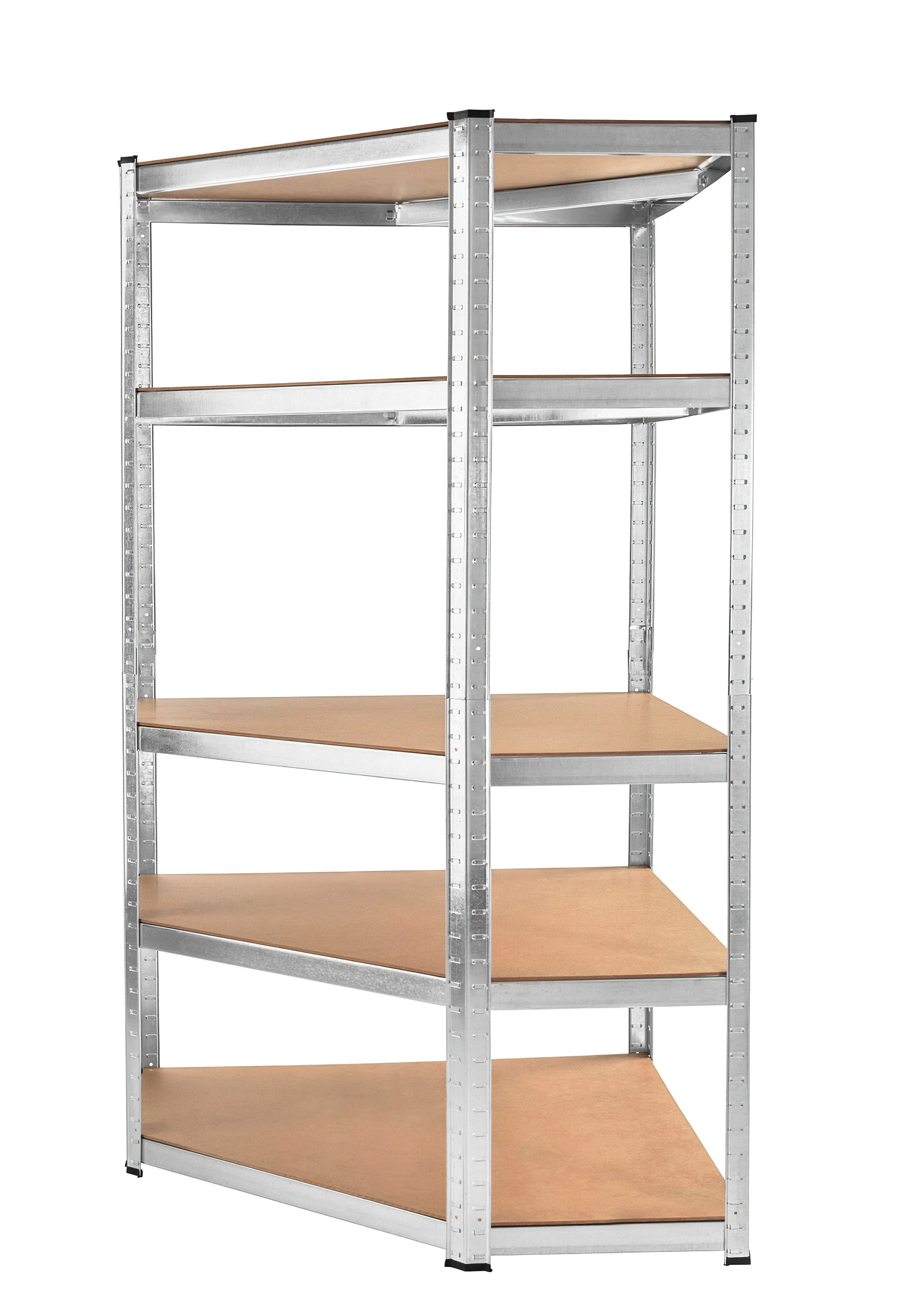 На височина около 180 см разполагате с 5 рафта от MDF, които могат да бъдат поставени на различна височина според нуждите. Рамката от поцинкована стомана в сребрист цвят гарантира стабилност и голяма товароносимост от около 875 кг (всяка полица издържа около 175 кг).