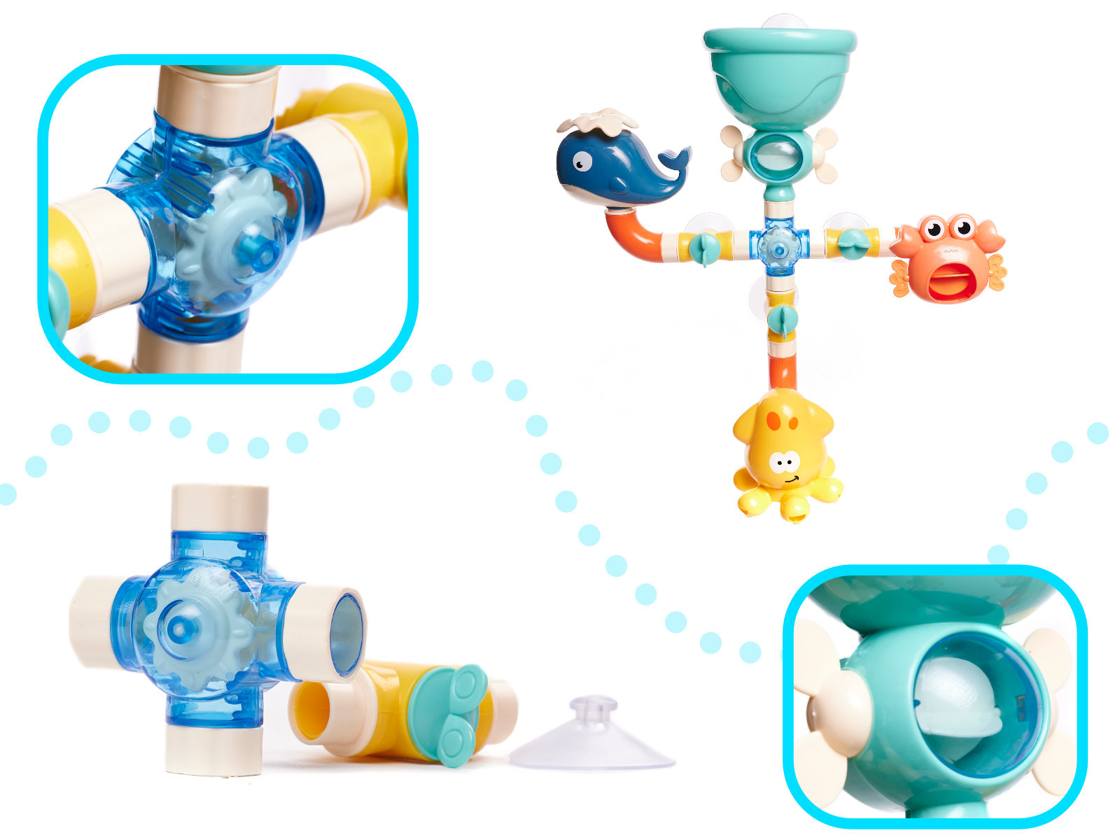 Цветната мултифункционална играчка превръща всяка баня във фантастично приключение.