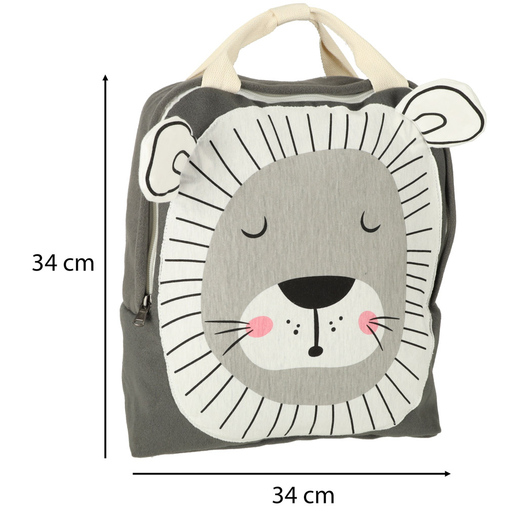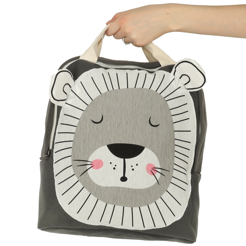 Сладка раница в модерен стил с мотив на лъв със сигурност ще спечели сърцето на всяко дете в предучилищна възраст.