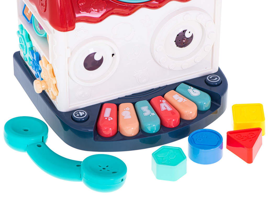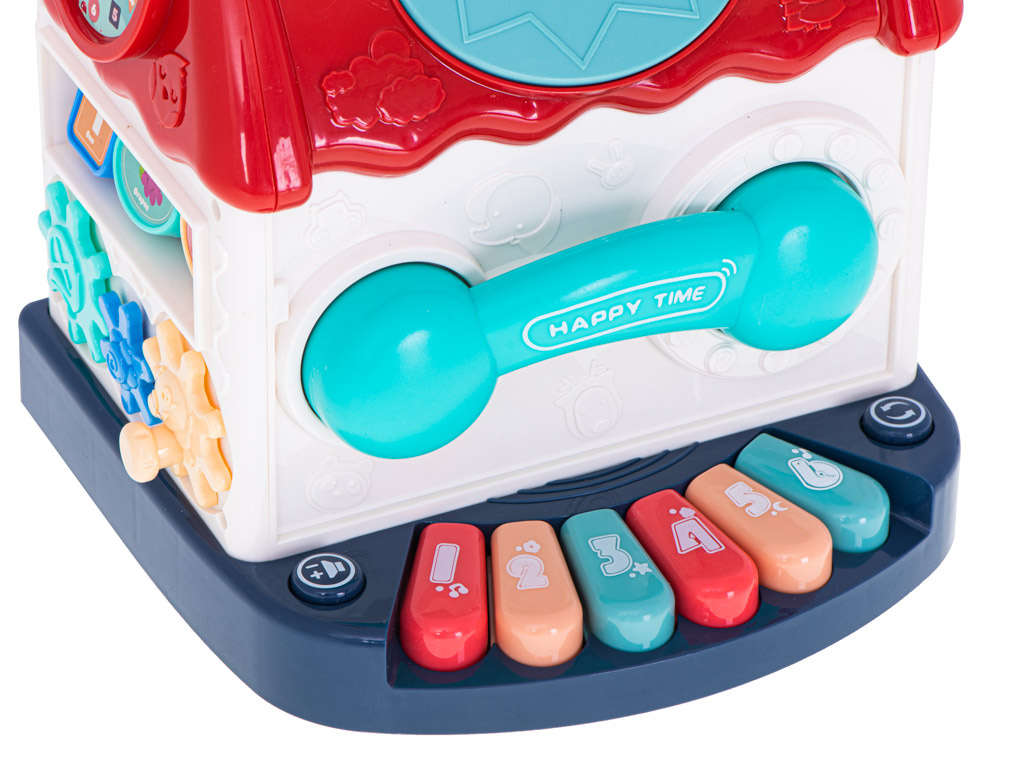 Интерактивната играчка ще позволи на малкото дете не само да се забавлява, но и да прекарва времето си полезно! Играчката ще бъде добър избор за всеки! Всички елементи на играчката имат особено приятни и интересни цветове! Играчката има редица интересни функции, всяка стена предлага различни атракции!