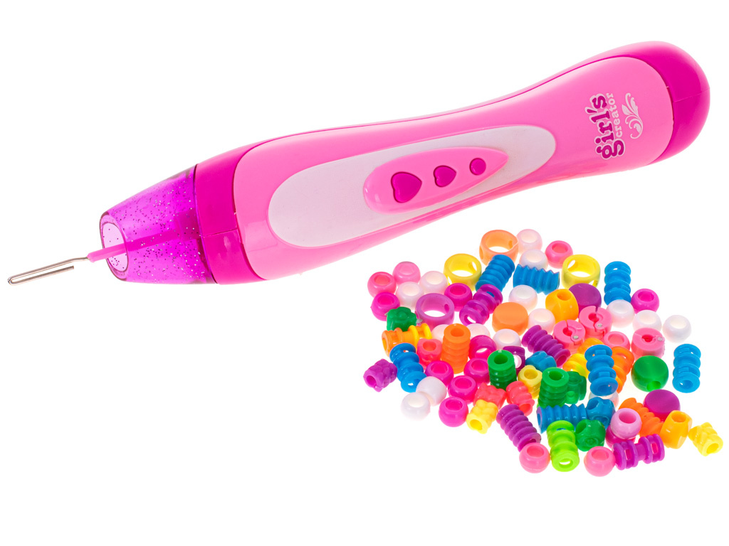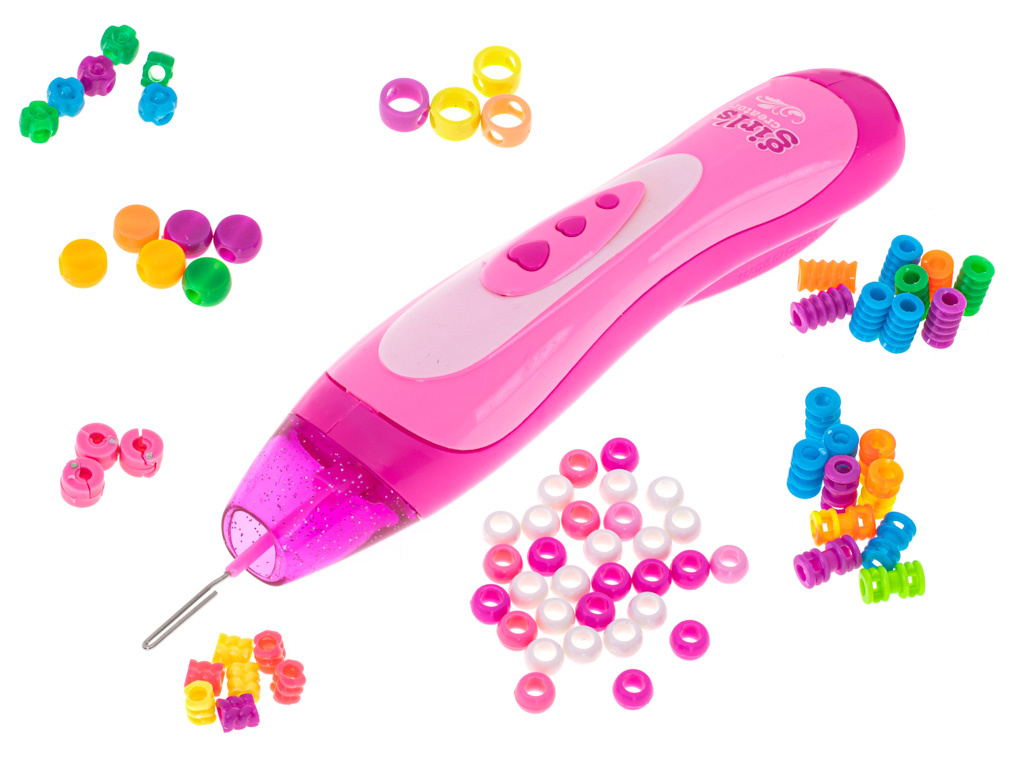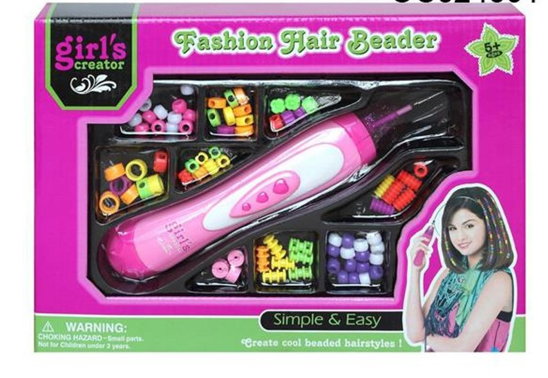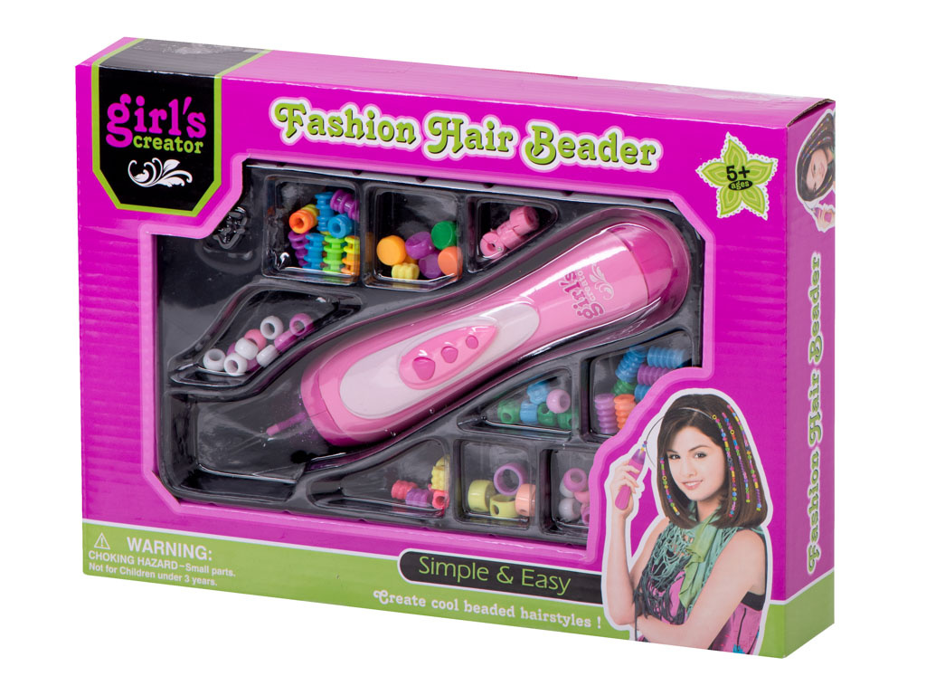Розова машина за мъниста. Благодарение на включените цветни мъниста можете да създадете своя собствена уникална прическа. Изразете себе си с ефектна прическа! Материал: пластмаса. Размери на самобръсначката: приблизително.22cm. Брой мъниста: 78бр.Цялото описание