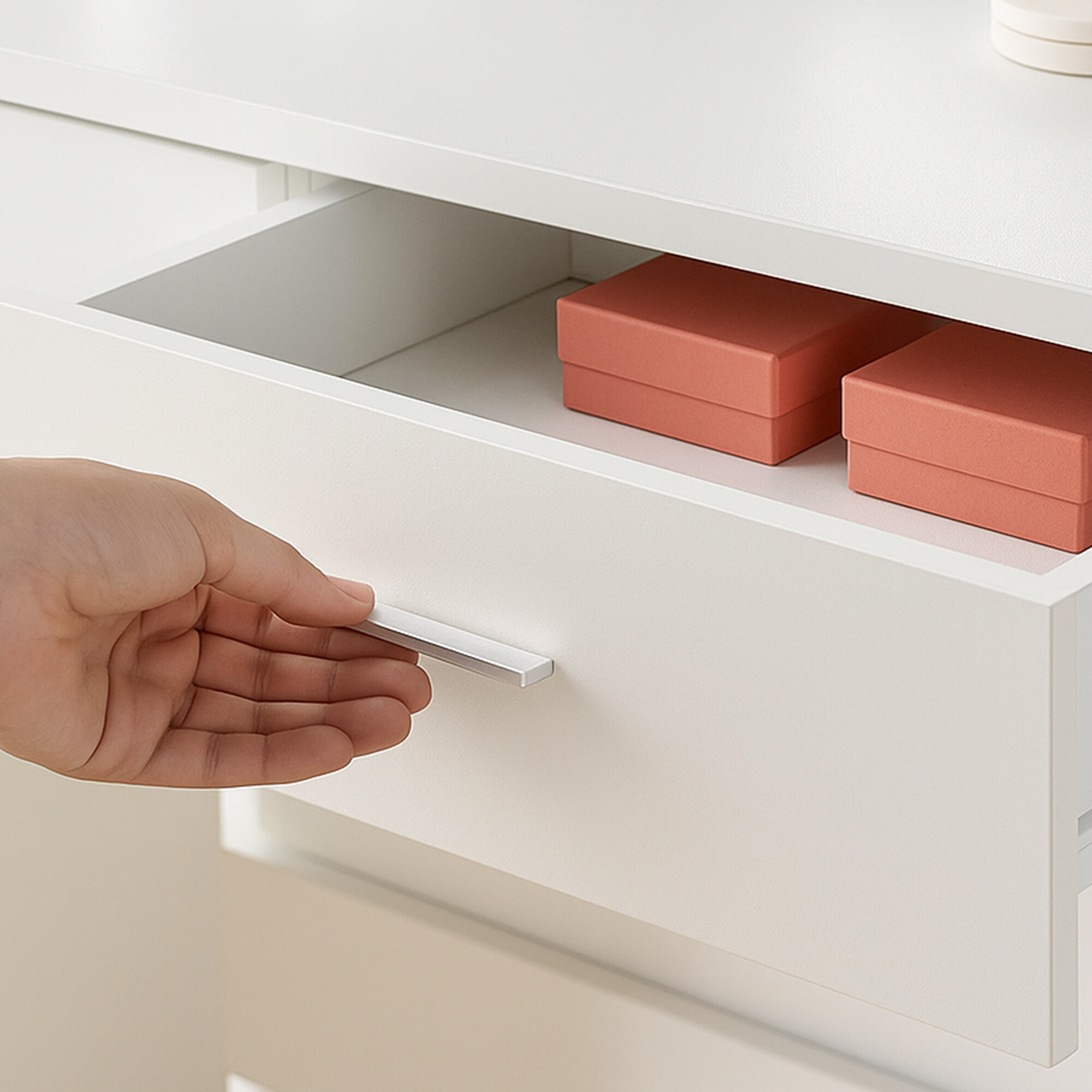 Със сигурност ще оцените и 2-те просторни чекмеджета, в които удобно ще съхранявате всичките си козметични принадлежности, бижута и други аксесоари.