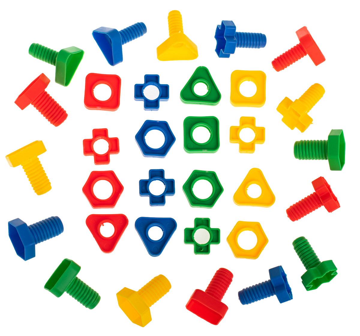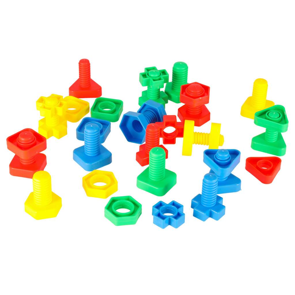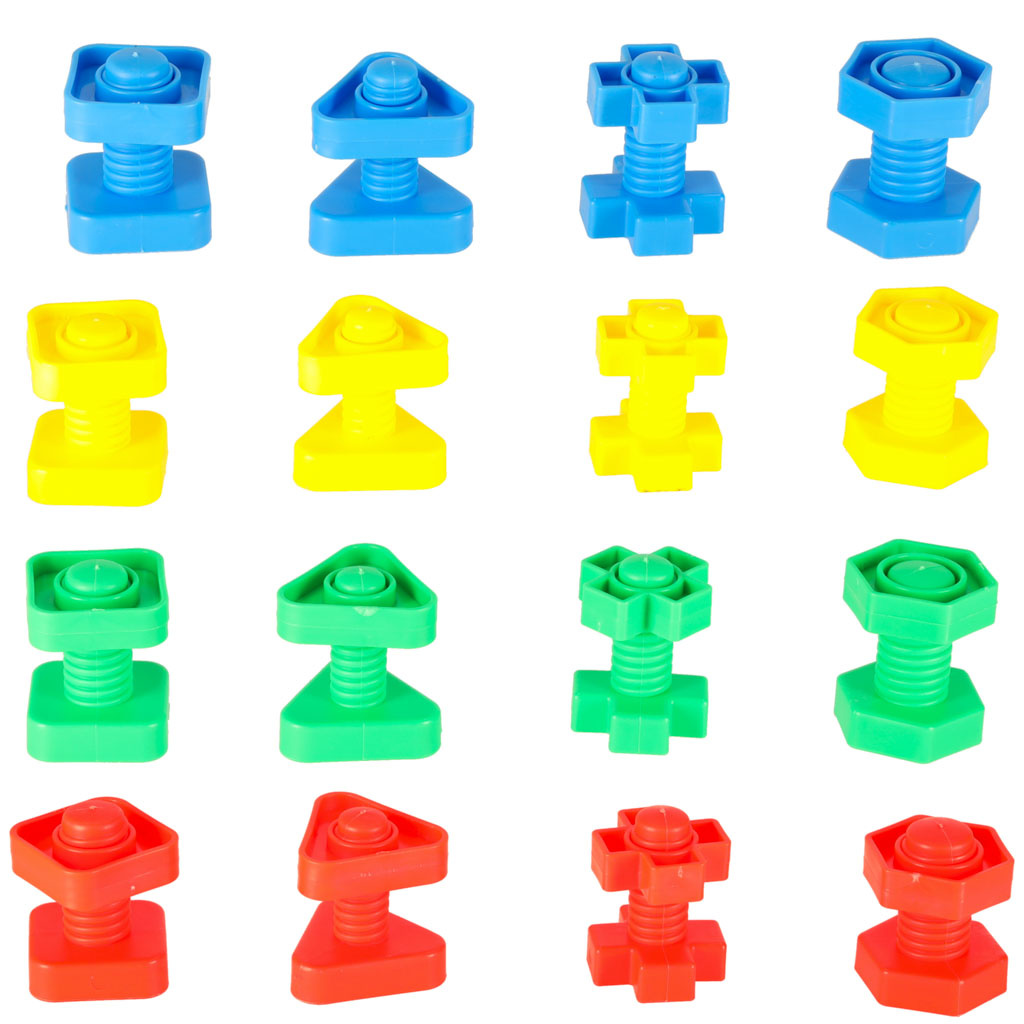 Многокомпонентни блокове във формата на винт.Отлична образователна играчка в красиви цветове, която ще донесе много радост и забавление.Комплектът съдържа 30 части: 15 болта, 15 гайки.Височина на винта: около 5,5 см.Диаметър на дъното на винта: 1,5-2 смЦялото описание