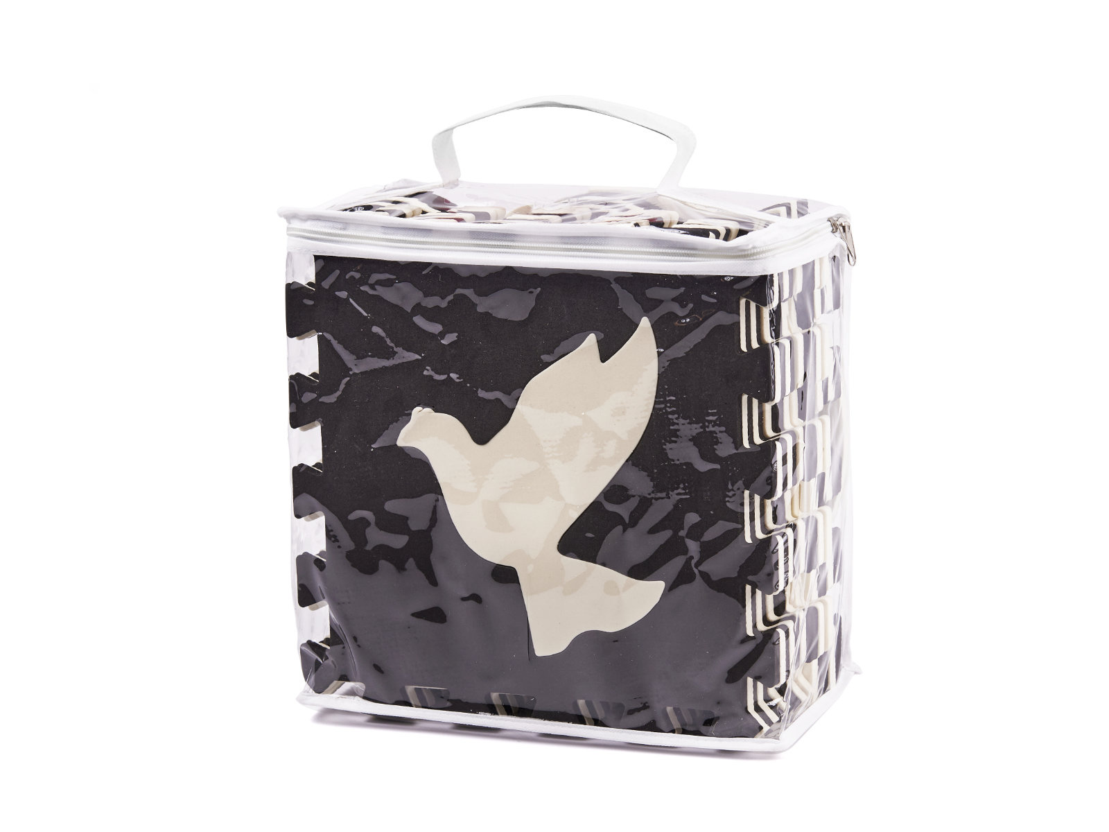 Комплектът съдържа 25 части (квадрати + странични панели + картинки). Пъзелите са приятно меки. Детето може да се научи да пълзи и да се катери безопасно върху този килим. По-късно може да използва отделни животни и форми, с които да играе.