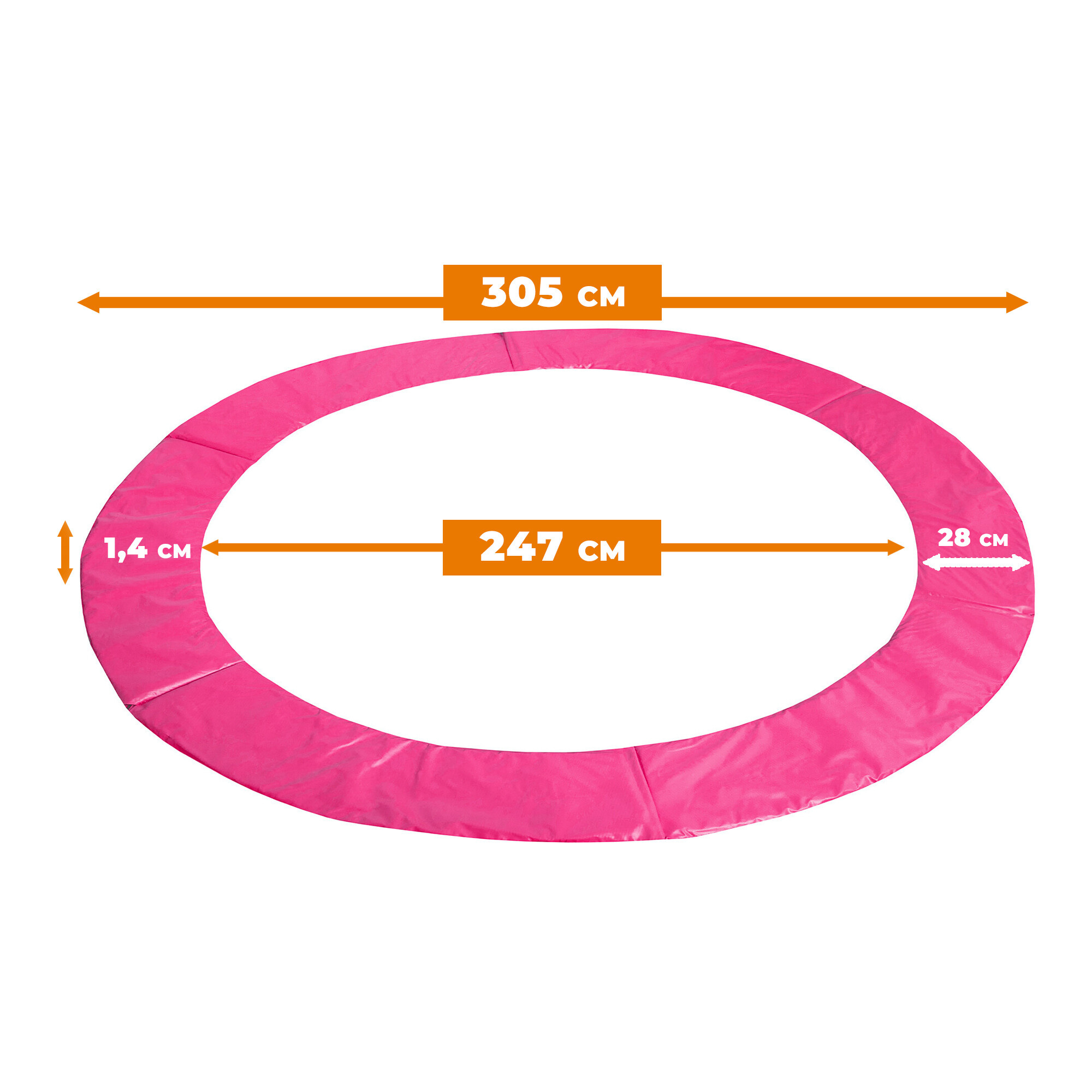 Универсално покритие за пружини за батут с размери 300, 304 и 305 см в розов цвят.