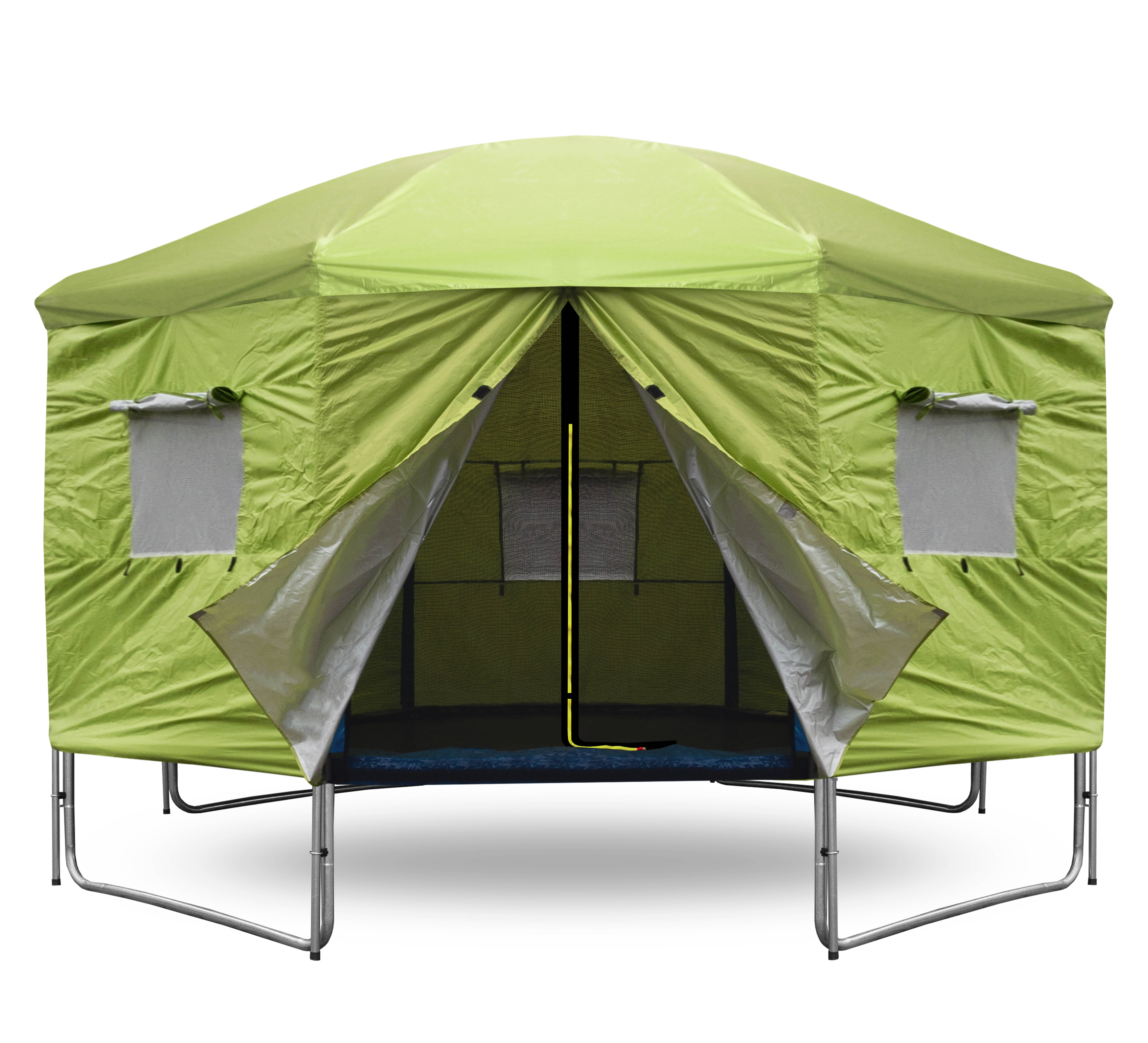 А когато батутът не се използва активно, палатката помага да се защити отскачащата повърхност от замърсяване и UV лъчение.