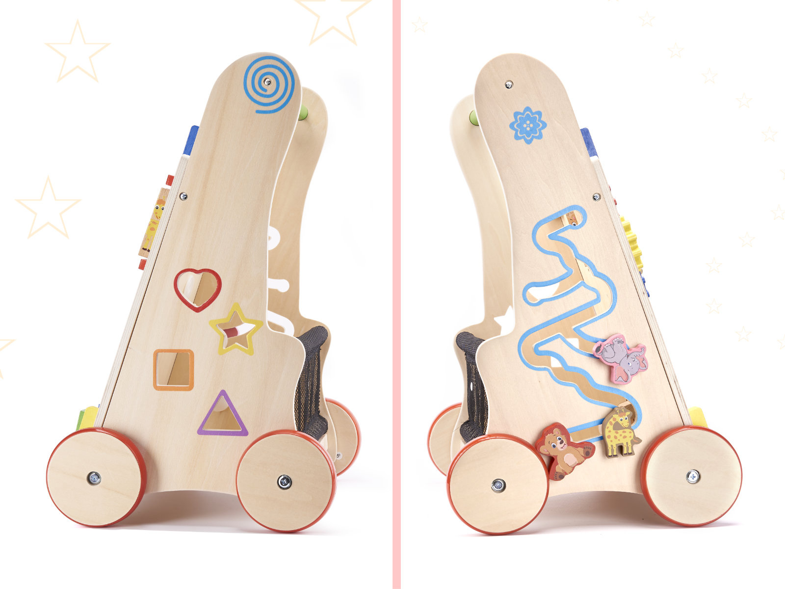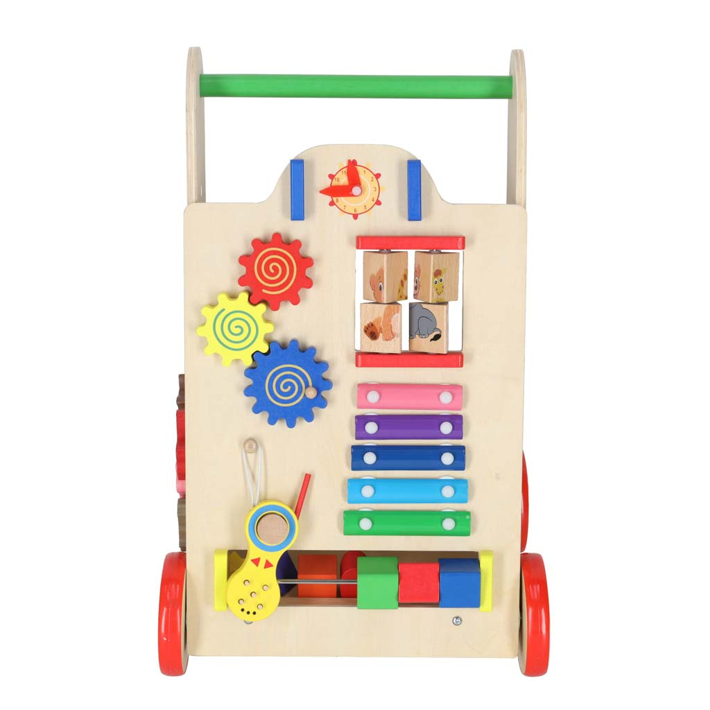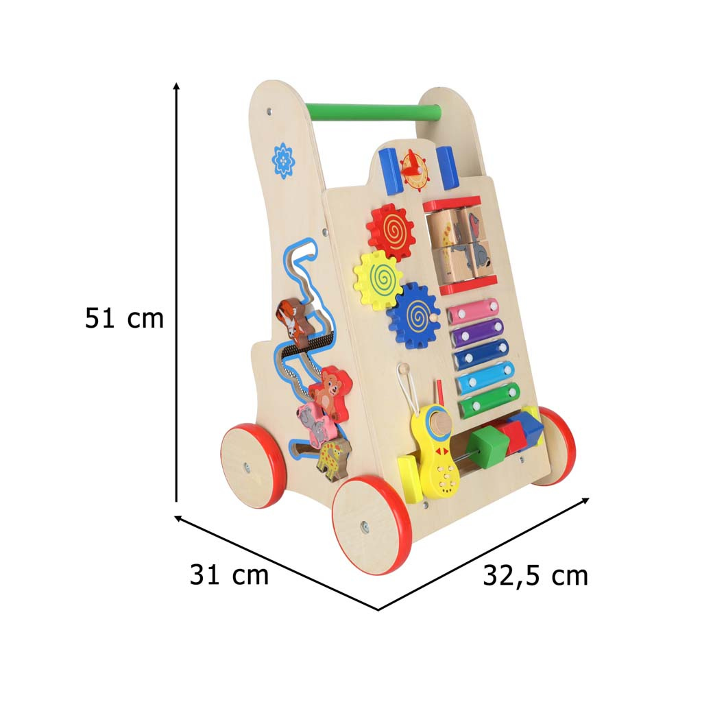 Проходилка, която ще улесни първите стъпки на бебето ви. В по-късен етап от живота си тя ще може да се използва и като количка за любими играчки и първи плот.ходенето с велосипед помага на малкото дете да поддържа равновесие, докато се учи да ходи. Той насърчава развитието на ръчните умения и развива двигателните умения на цялото тяло. Проходилката ще насърчи вашето малко дете да бъде физически активно.нашата проходилка е стабилна опора за малко дете, което се учи да ходи. Детето няма да може да я преобърне. Дървените колела са защитени с противоплъзгащо гумено покритие.естетичен дизайн, смели цветове, внимание към детайла - приятен и безопасен спътник за вашето дете.тази люлка ще се хареса на родителите, които търсят екологични аксесоари за своето дете. Дървените играчки са чудесен избор!това не е просто проходилка! Разработчиците са се погрижили играта да осигури на малчуганите забавление по много начини. На предната страна има табло за управление, пълно с елементи, които да радват децата: