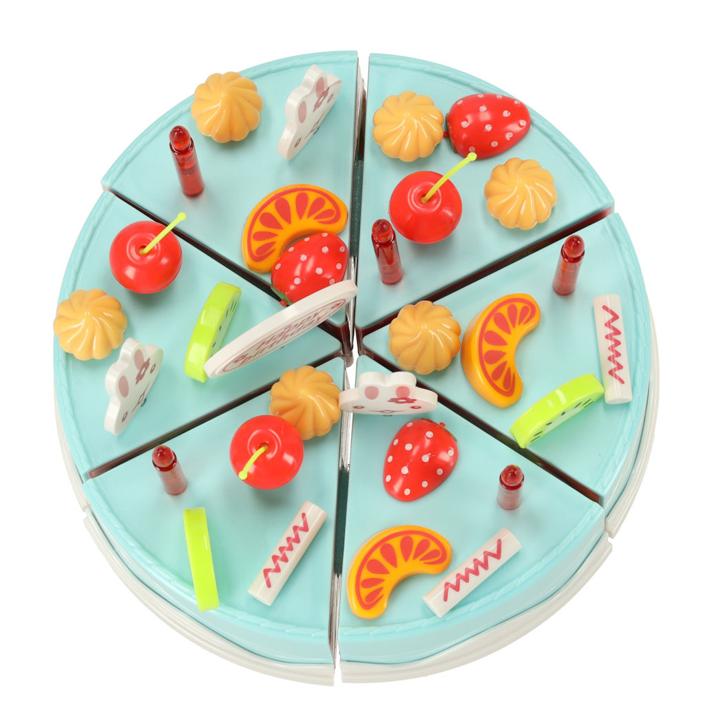 Тортата се състои от 6 части. Детето може да "реже" тортата с пластмасовия нож, включен в комплекта. Парчетата на тортата се съединяват с велкро.