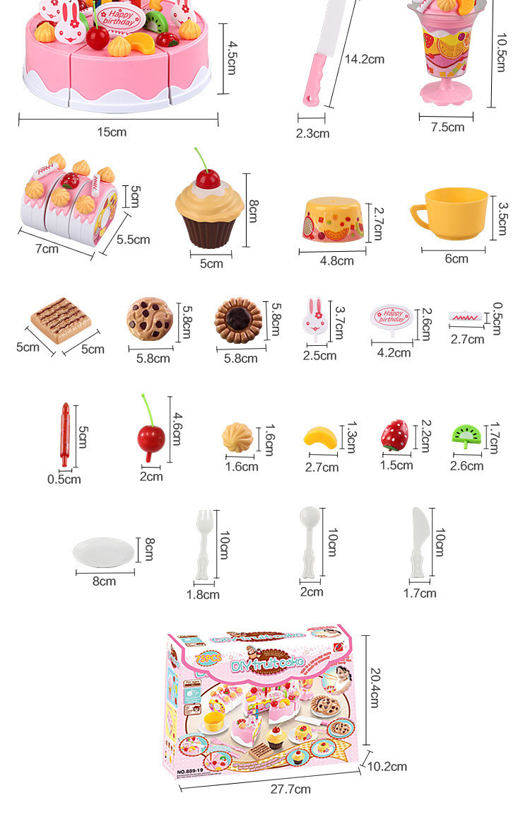 Детето може да добавя свещички за торта и други декорации от комплекта според собственото си въображение, така че забавлението никога да не свършва. Това е идеална играчка за развиване на ръчните умения на детето.