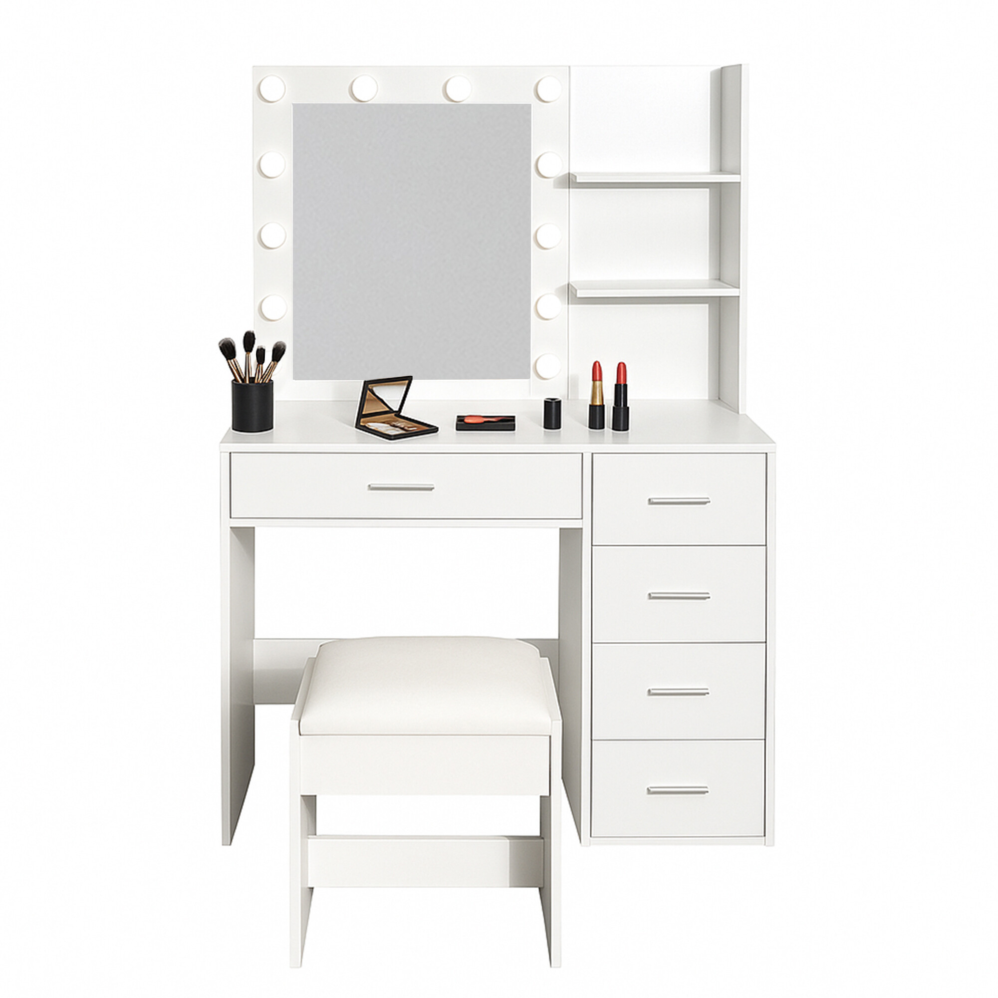 Подарете си ежедневна доза лукс с тази модерна тоалетка с огледало и LED осветление. Стилна бяла масичка с матово покритие ще се превърне не само в практично, но и в естетично допълнение към всяка спалня или гардероб.