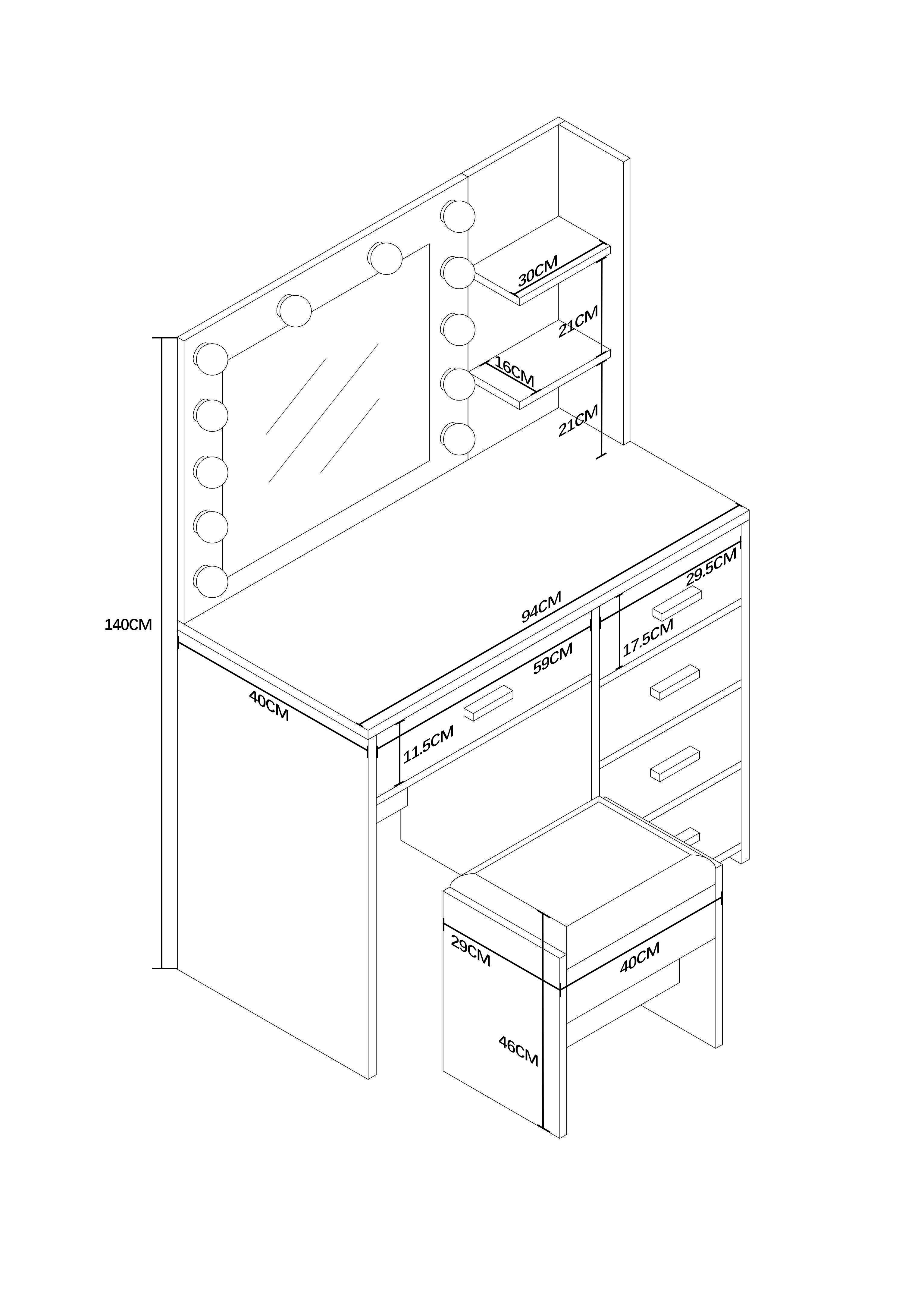 Широкият работен плот осигурява достатъчно място за ежедневен грим, оформяне на косата и грижа за кожата, като същевременно изглежда елегантно и чисто. Висококачественият ПДЧ гарантира здравина, стабилност и дълъг живот на масата, която ще запази своята красота дори след години употреба.