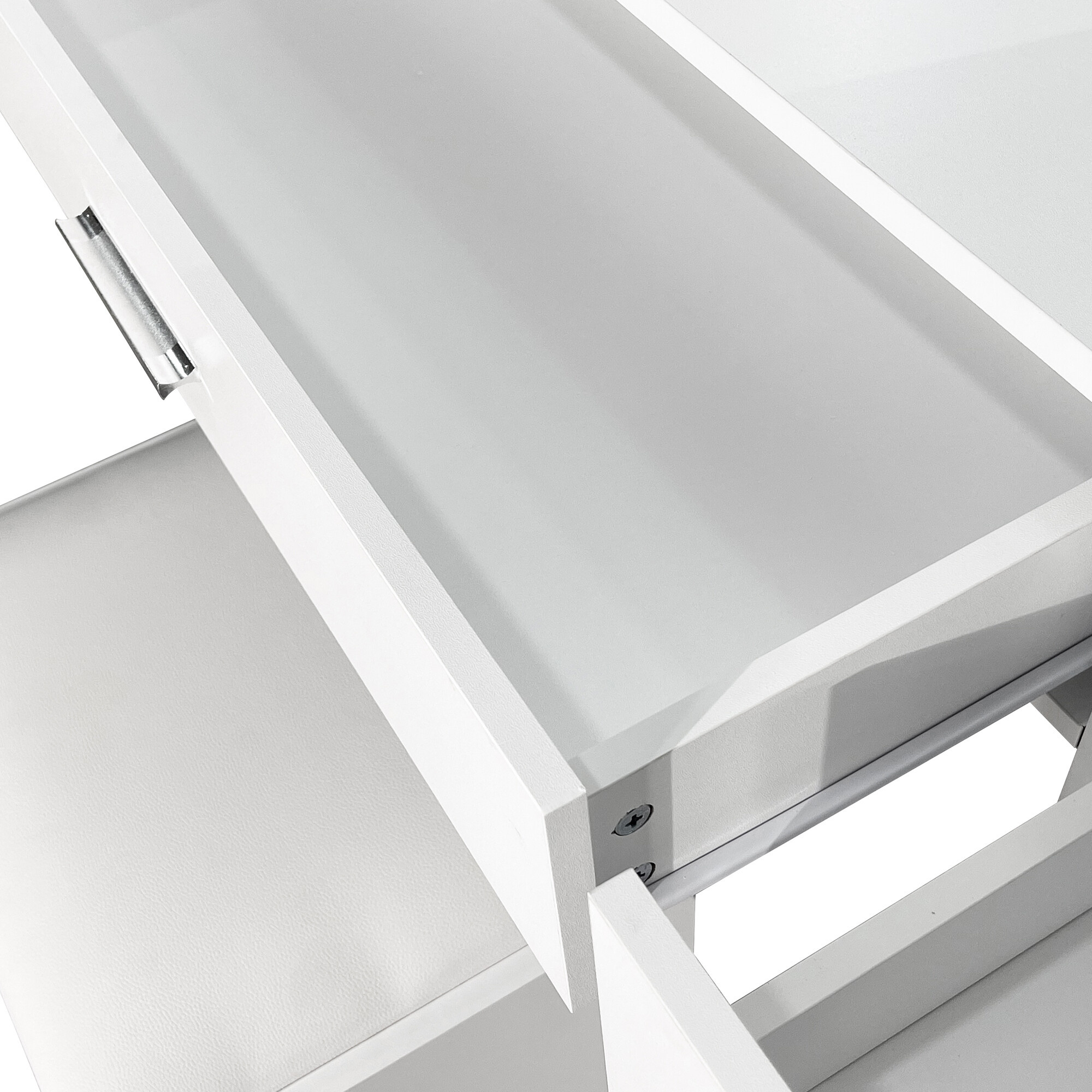 Размерите на масата 94 × 40 × 140 см гарантират, че тя ще се впише перфектно дори в по-малки спални или апартаменти. Белият матов повърхност изглежда елегантно и вечен, което прави масичката лесна за съчетаване с всякакъв интериор – от модерен до класически.