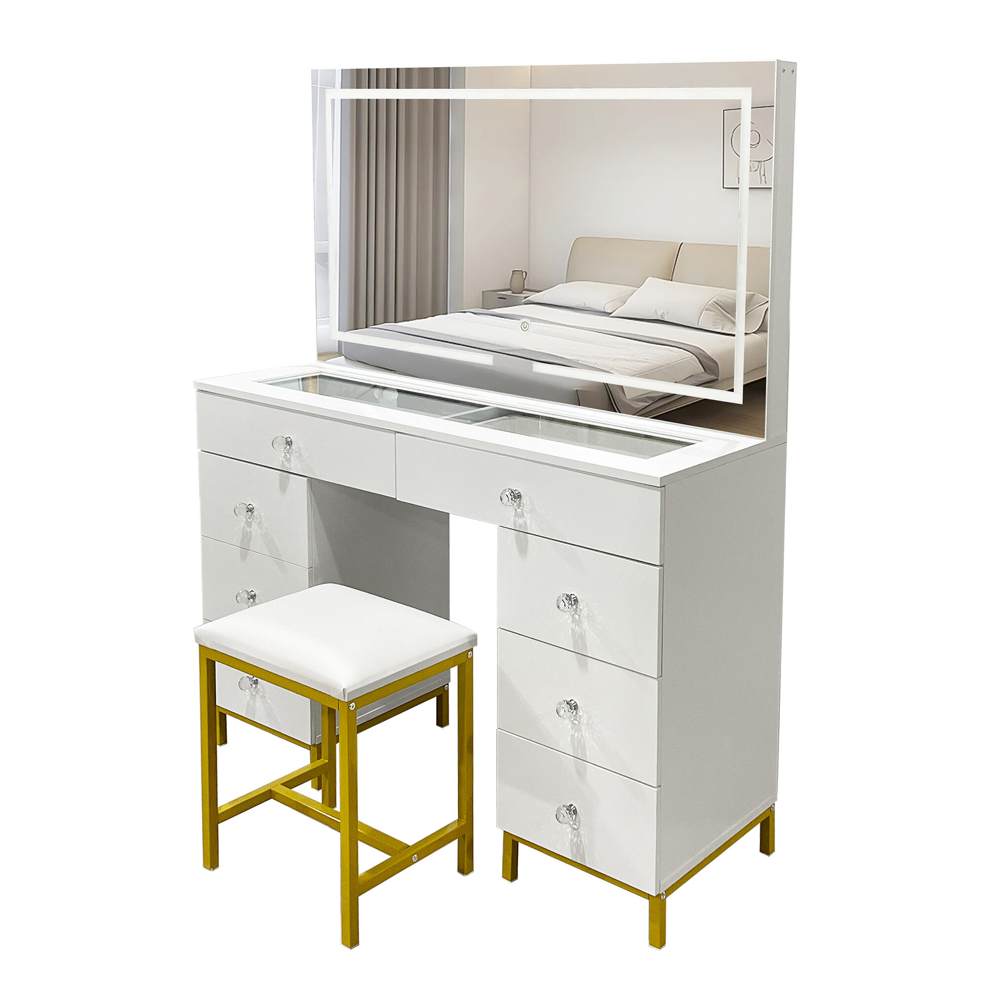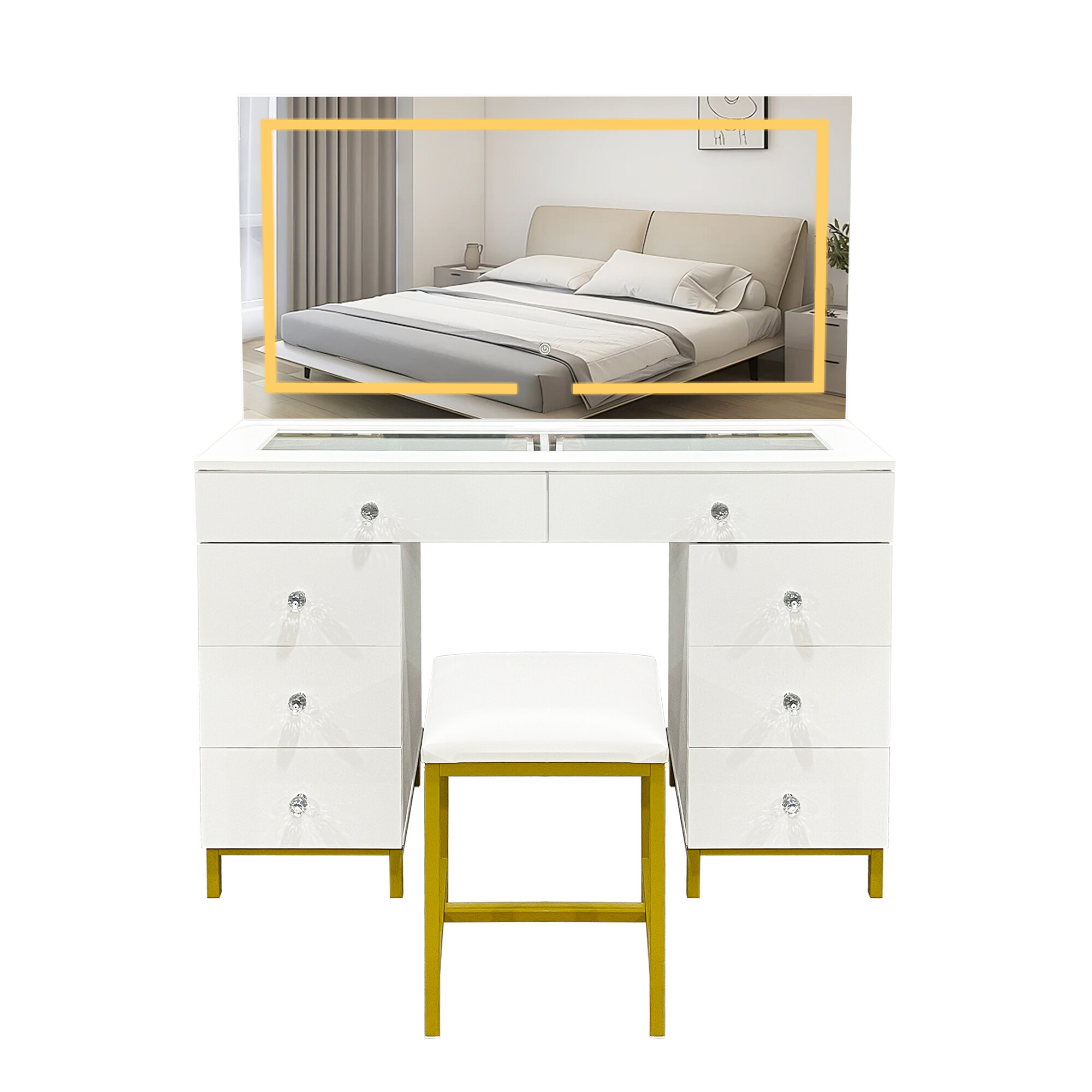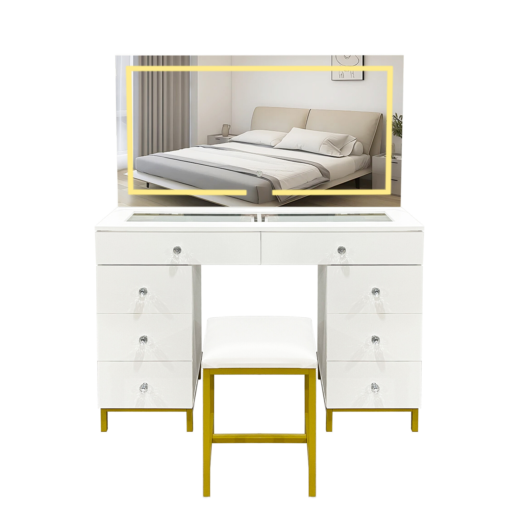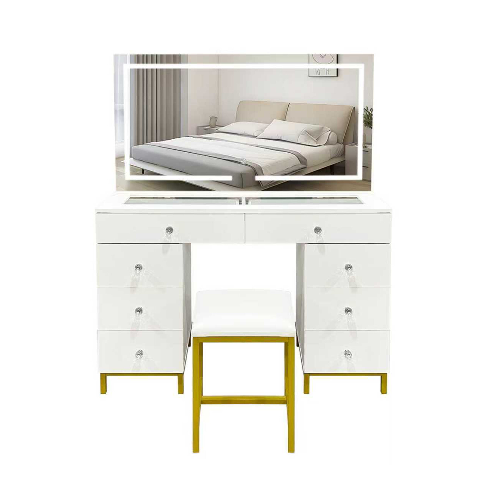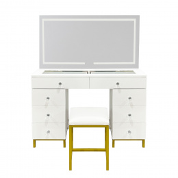 Подарете си ежедневна доза лукс с тази модерна тоалетка с огледало и LED осветление. Стилна бяла масичка с матово покритие ще се превърне не само в практично, но и в естетично допълнение към всяка спалня или гардероб.