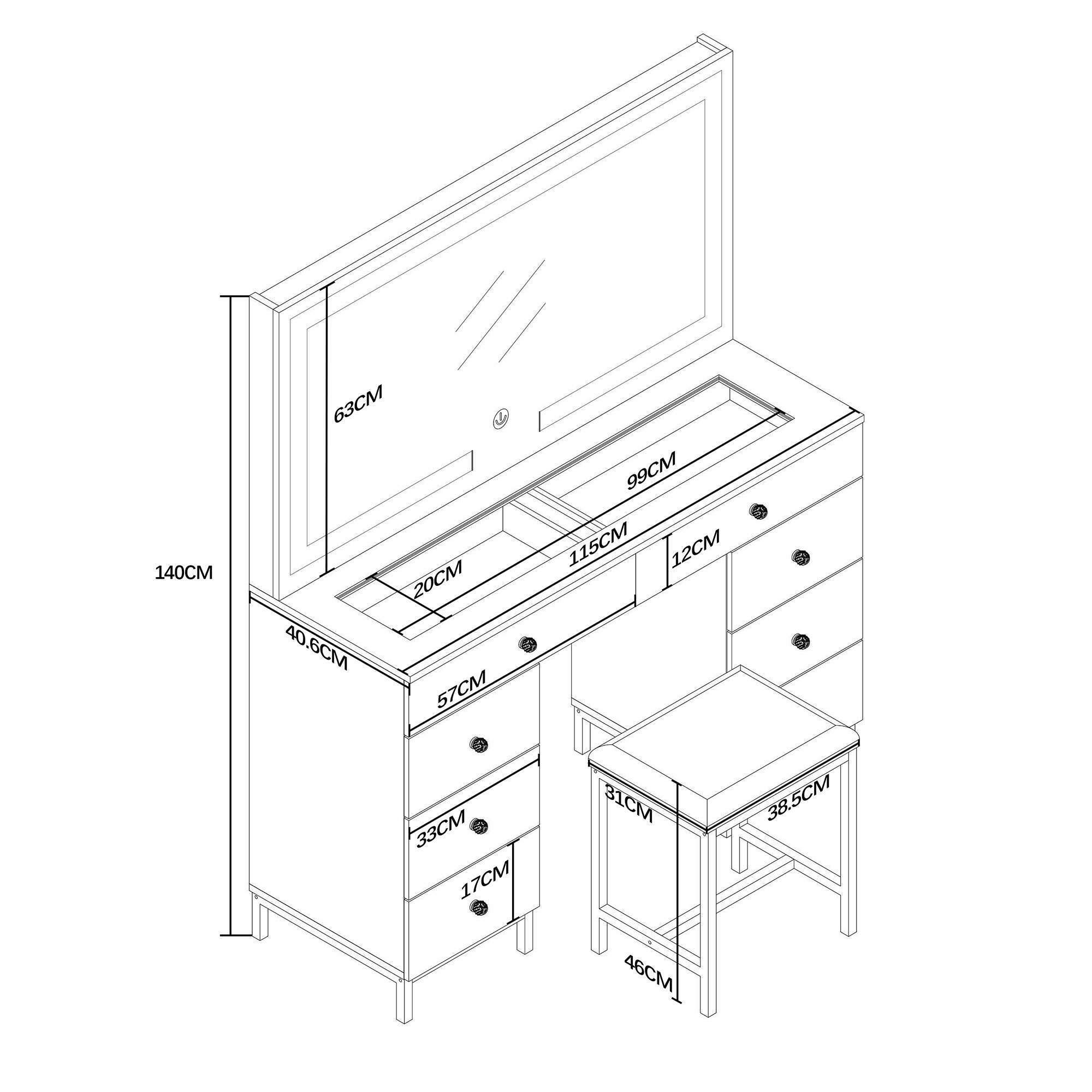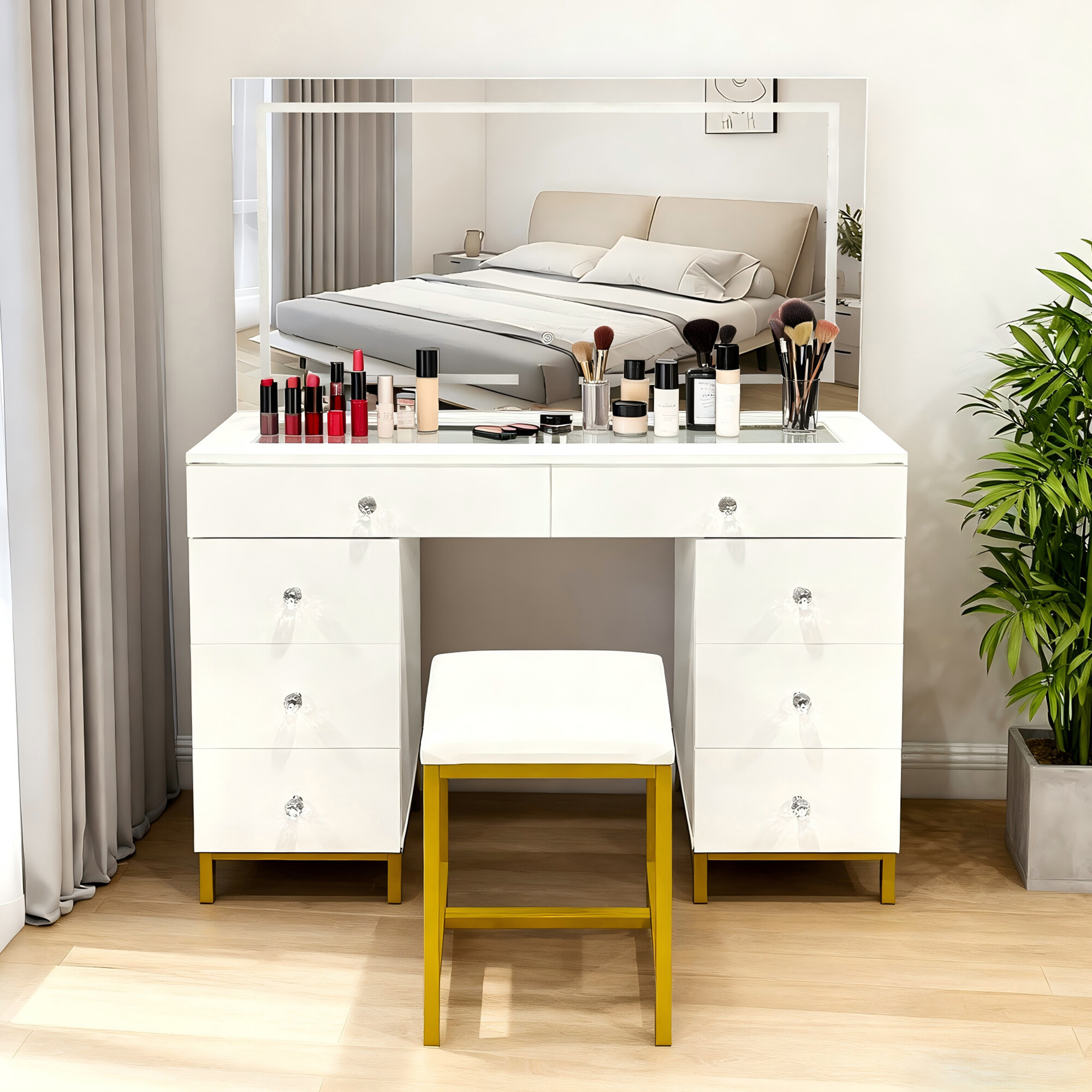 Осемте просторни чекмеджета предлагат достатъчно място за съхранение на грим, бижута и други аксесоари, които ще имате винаги подръка.