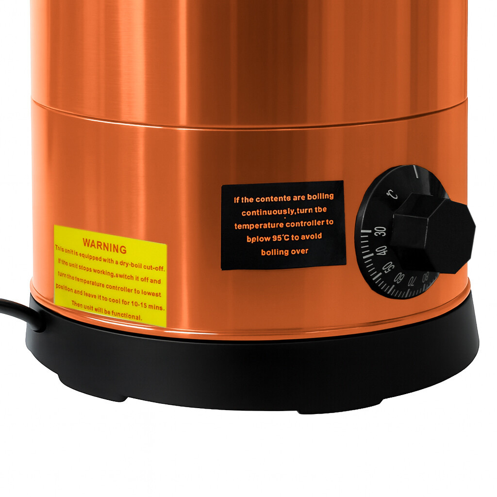 Съдът и конструкцията са изработени от неръждаема стомана 304, която е хигиенична, високо устойчива и лесна за поддръжка. Благодарение на това, този неръждаем нагревател за топли напитки е подходящ за интензивна ежедневна употреба.