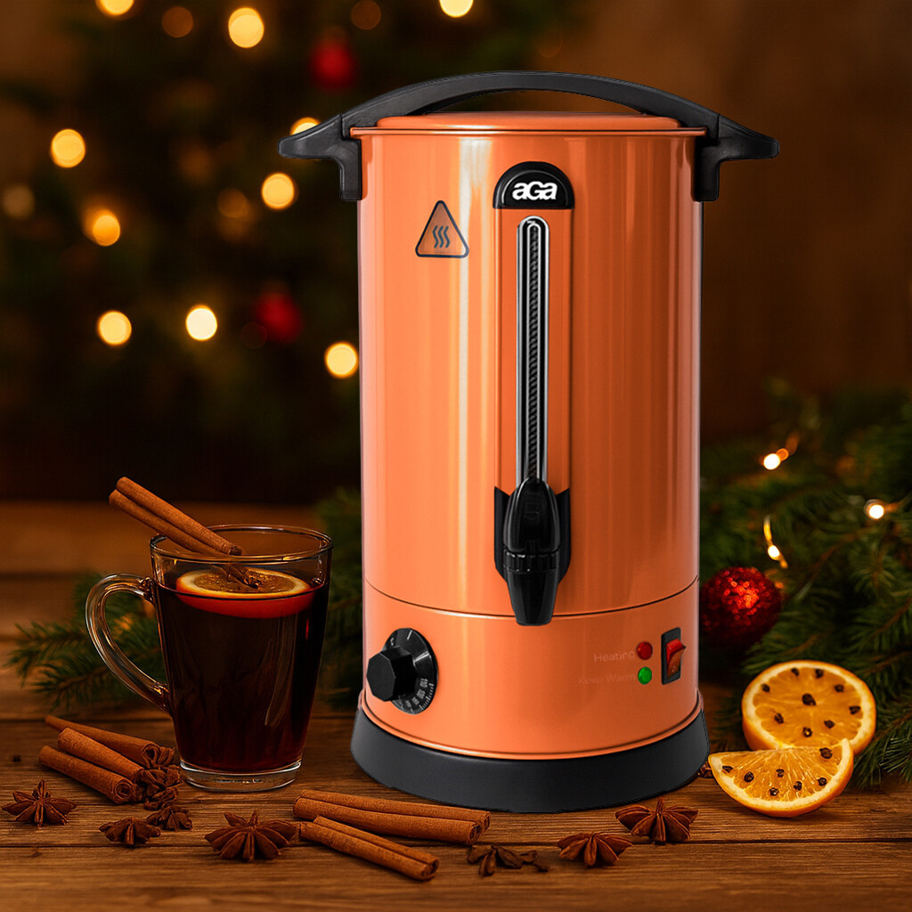 Aga нагревател за напитки е надежден, мощен и професионален уред за приготвяне на напитки, който е идеален за приготвяне и затопляне на топли напитки. Идеален е за греяно вино, чай, кафе, пунш и други топли напитки. Този нагревател за напитки, благодарение на своята здрава и устойчива конструкция, е идеален за използване в ресторанти, хотели, кетъринг услуги, както и на щандове на коледни пазари, панаири или при различни частни събития.