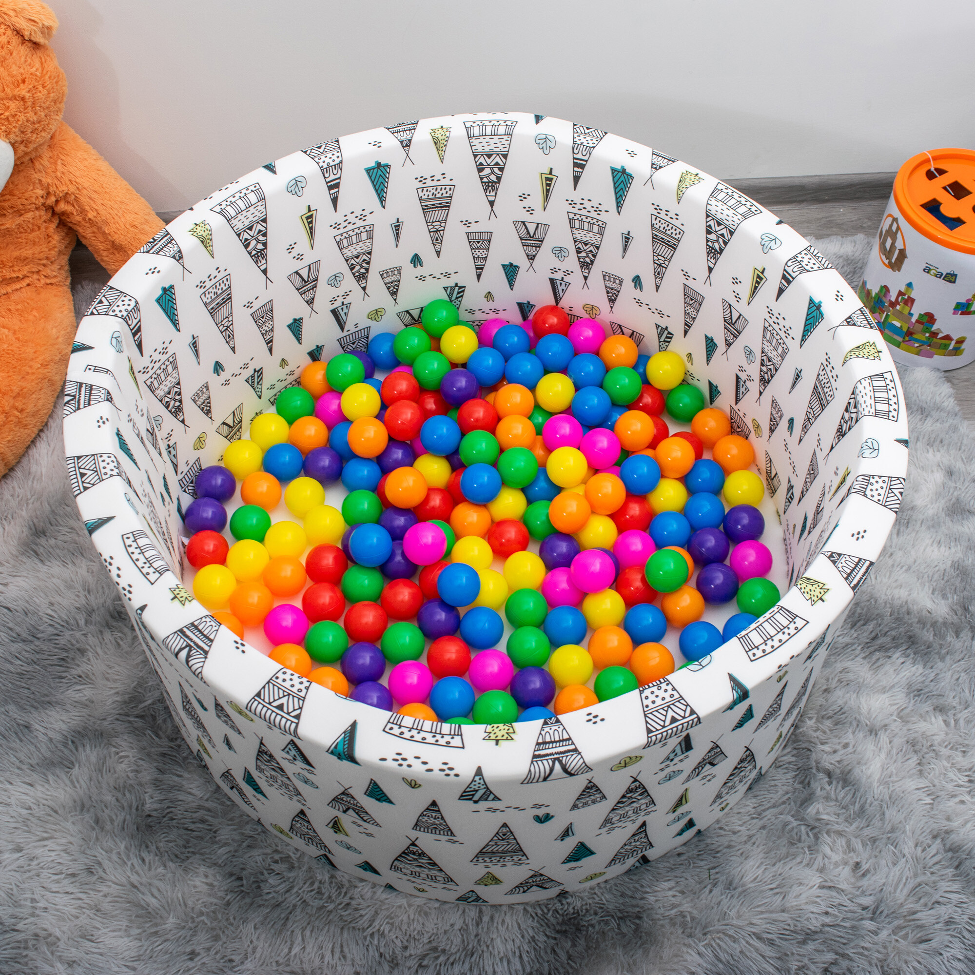 В комплект с басейна има 200 (Ø 5,5 см) цветни топки. Всички използвани материали са с най-високо качество. Материалите са сертифицирани.