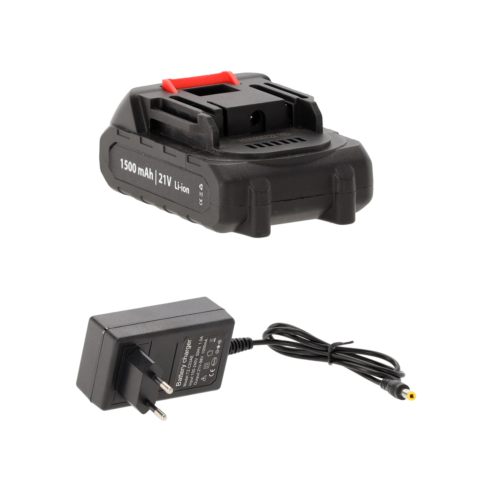 Комплектът включва две мощни 21V батерии, които осигуряват дълга и непрекъсната работа без необходимост от често зареждане. Докато използвате едната батерия, другата може да се зарежда – работата може да продължи без излишни прекъсвания. Бързото зареждане освен това спестява вашето време.
