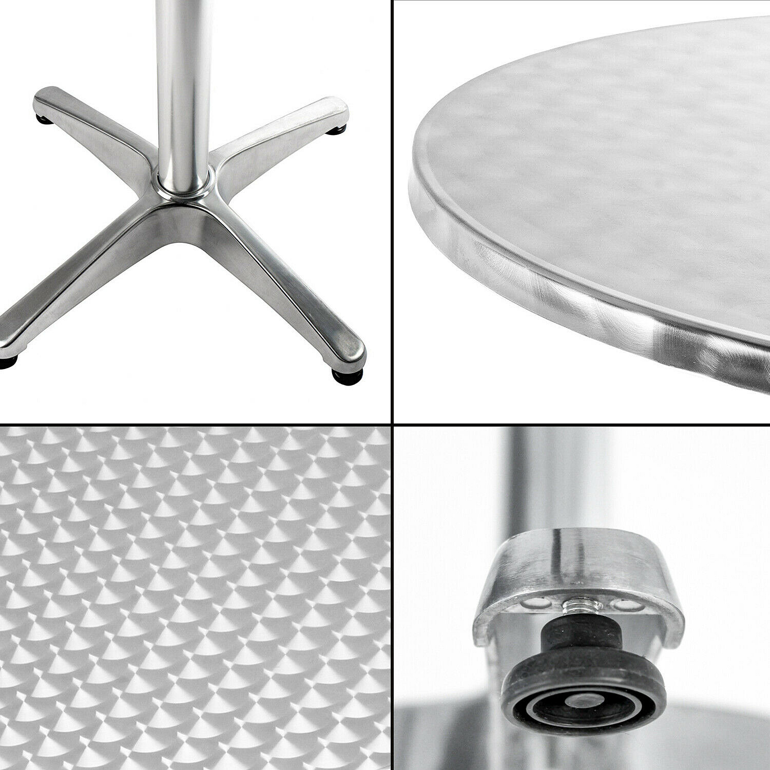 Градинска маса BISTRO със здрава алуминиева рамка и неръждаема плоча в модерен дизайн, подходяща за градини, тераси, кафенета, беседки, балкони или плажове.
