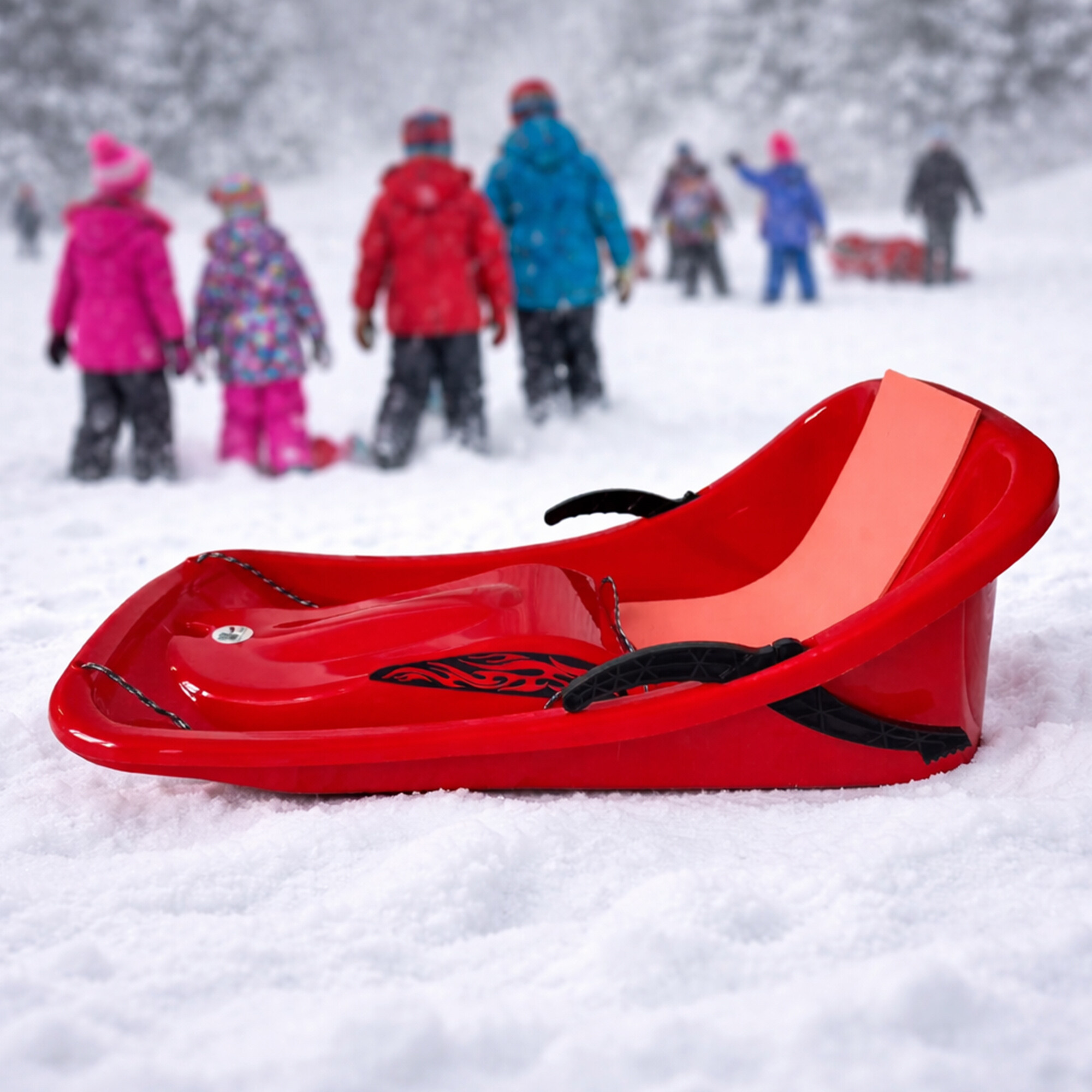 Бобът е оборудван с две странични спирачки, с които детето може да контролира и коригира посоката и скоростта на движение.