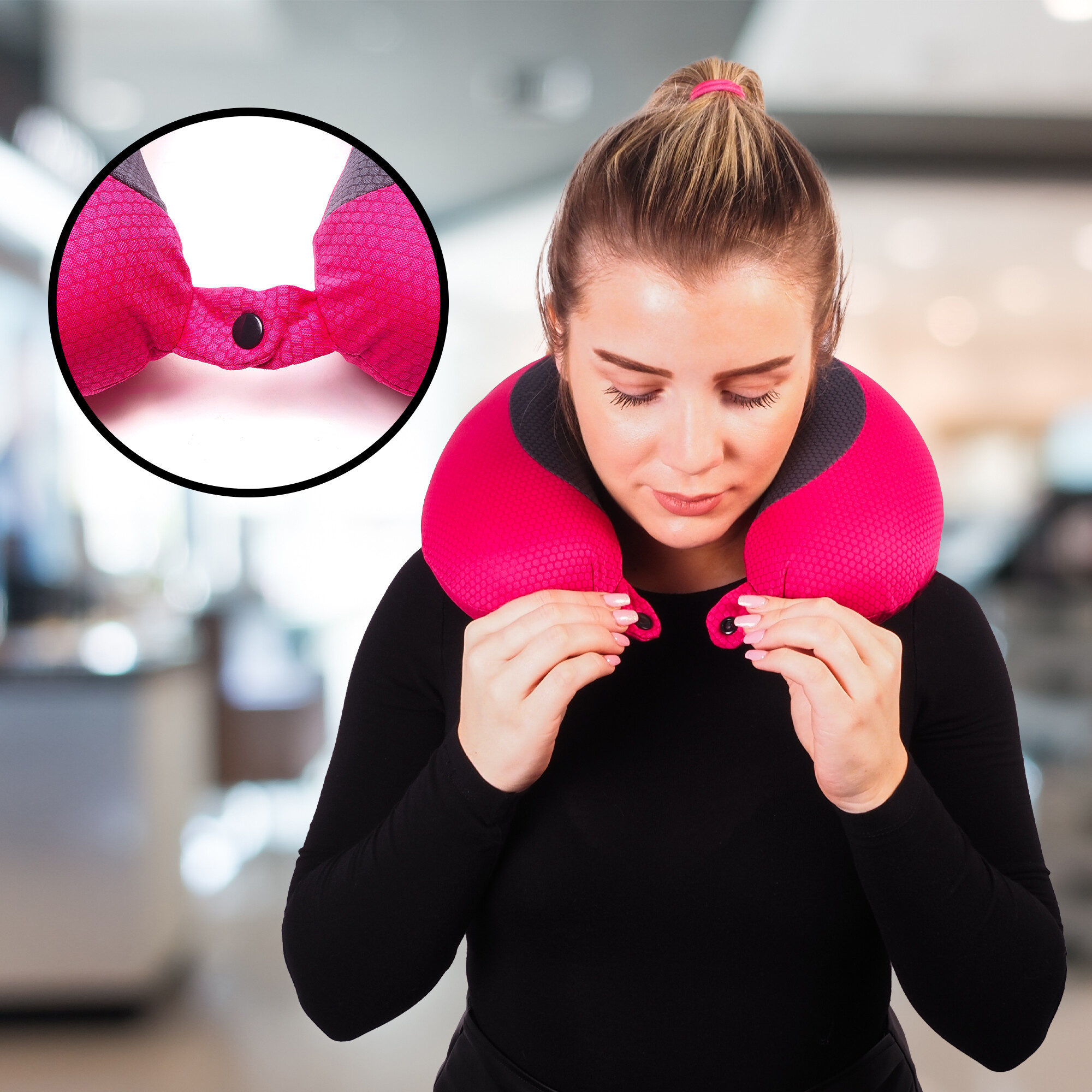 Ергономичният дизайн на възглавницата гарантира, че главата и шията ви ще бъдат в оптимална позиция, което помага за предотвратяване на болки и скованост. Независимо дали пътувате на къси или дълги разстояния, тази възглавница ще ви осигури необходимата опора и комфорт, за да пристигнете на дестинацията си отпочинали и свежи.