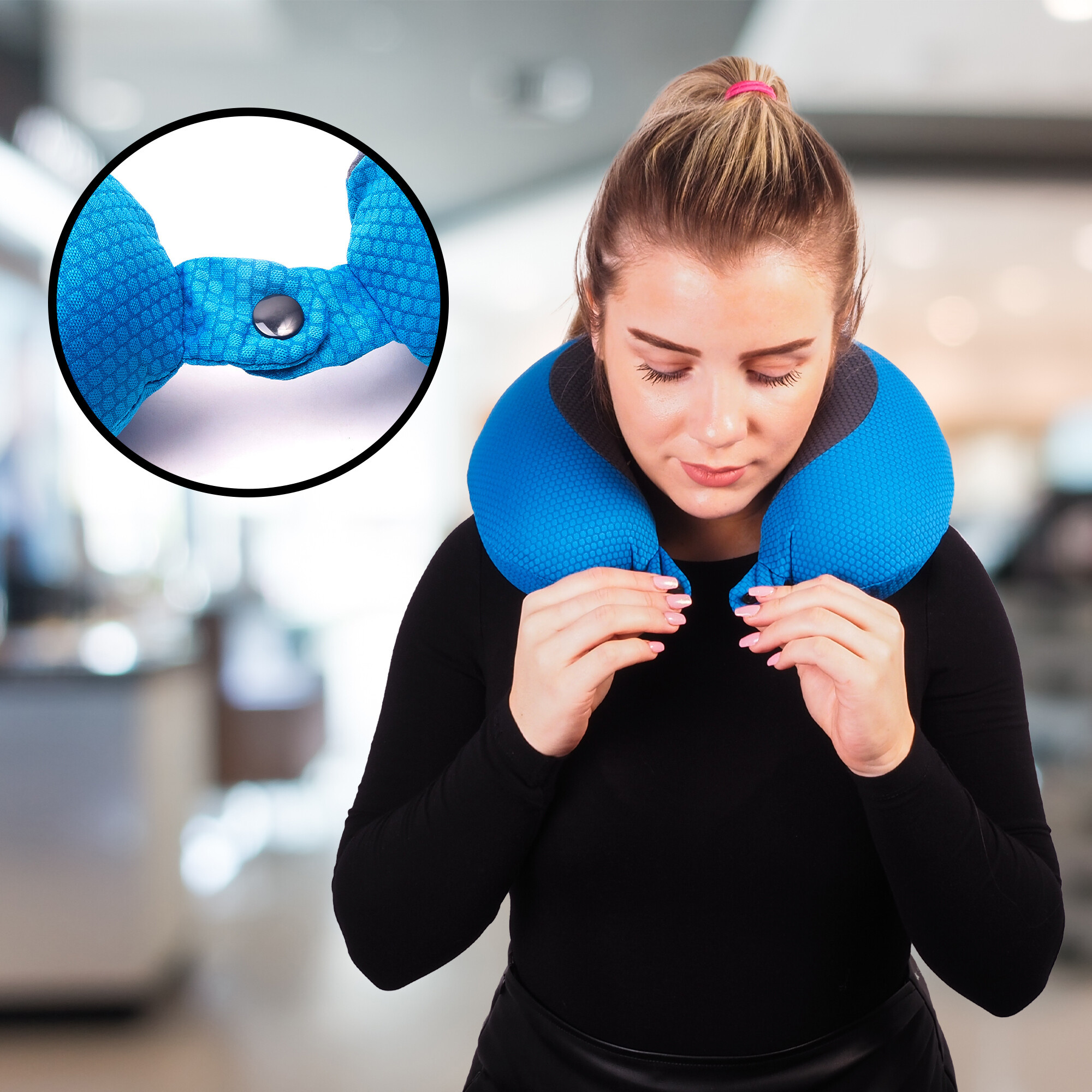 Ергономичният дизайн на възглавницата гарантира, че главата и шията ви ще бъдат в оптимална позиция, което помага за предотвратяване на болки и скованост. Независимо дали пътувате на къси или дълги разстояния, тази възглавница ще ви осигури необходимата опора и комфорт, за да пристигнете на дестинацията си отпочинали и свежи.